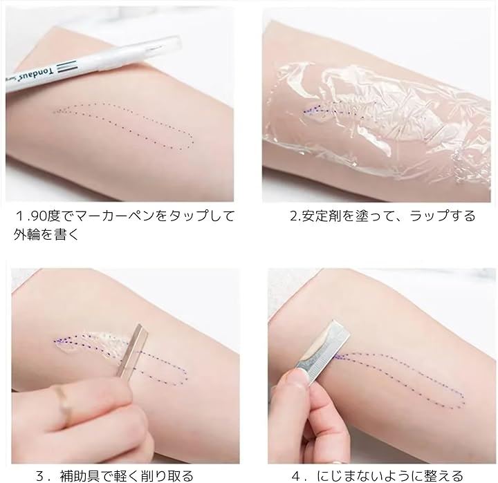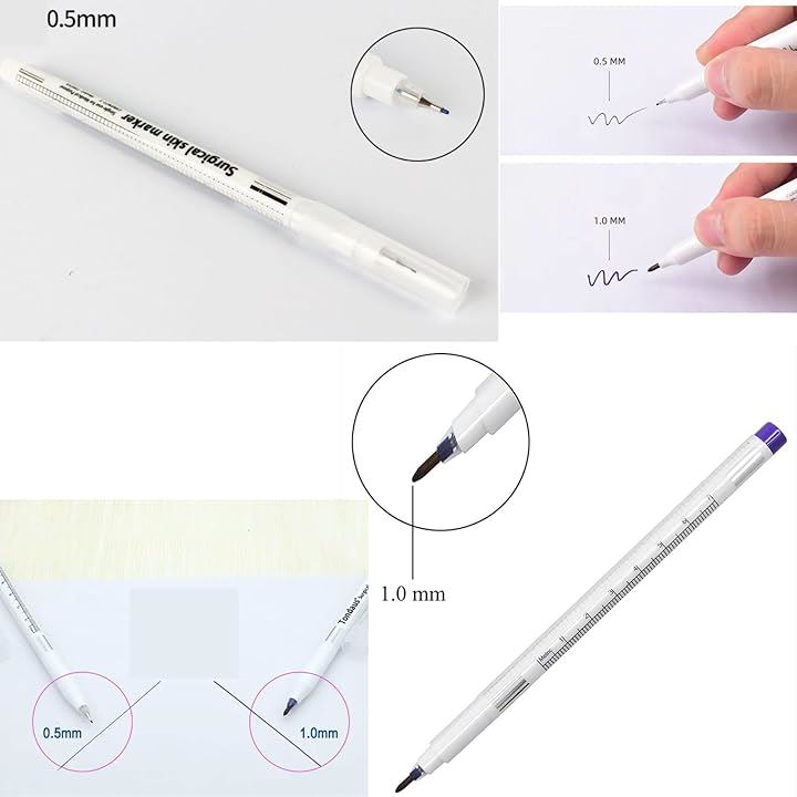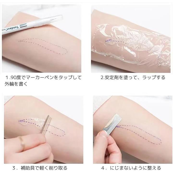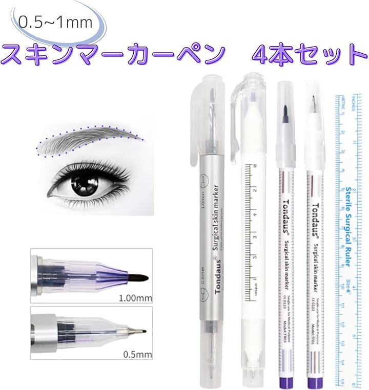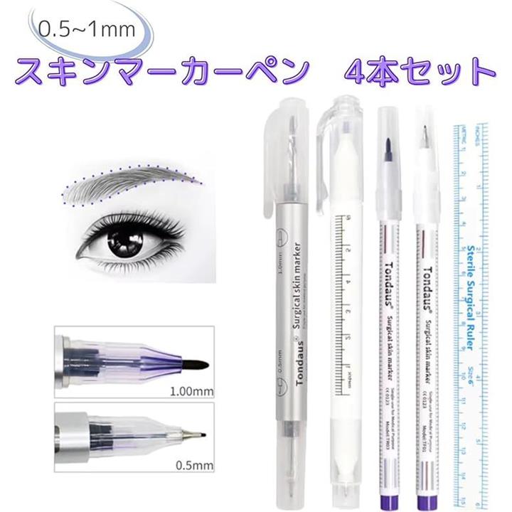 スキンマーカーペン タトゥーペン 4本 0.5mm-1mm ペン先 眉毛 ルーラー アートペン 位置決め サロン用 眉毛外科スキンマーカーペン 全プロフェッショナルアートメイクタトゥー用品