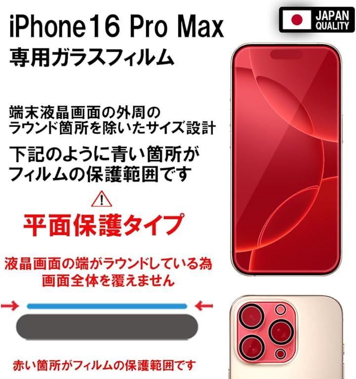 強化モデルRISE 2枚+2枚 フィルム iPhone 16 Pro Max ガラスフィルム カメラフィルム レンズフィルム レンズ保護ガラス レンズカバー 保護フィルム 高透過 高光沢 日本製 旭硝子 0.26mm 硬度10H 2.5Dラウンドエッジ