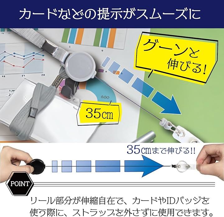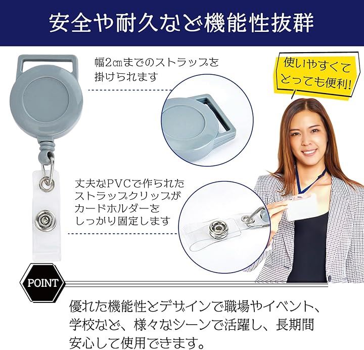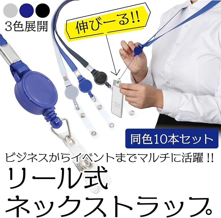 ネックストラップ 伸縮リール 社員証 IDカード 首掛け 来客 業者 a597