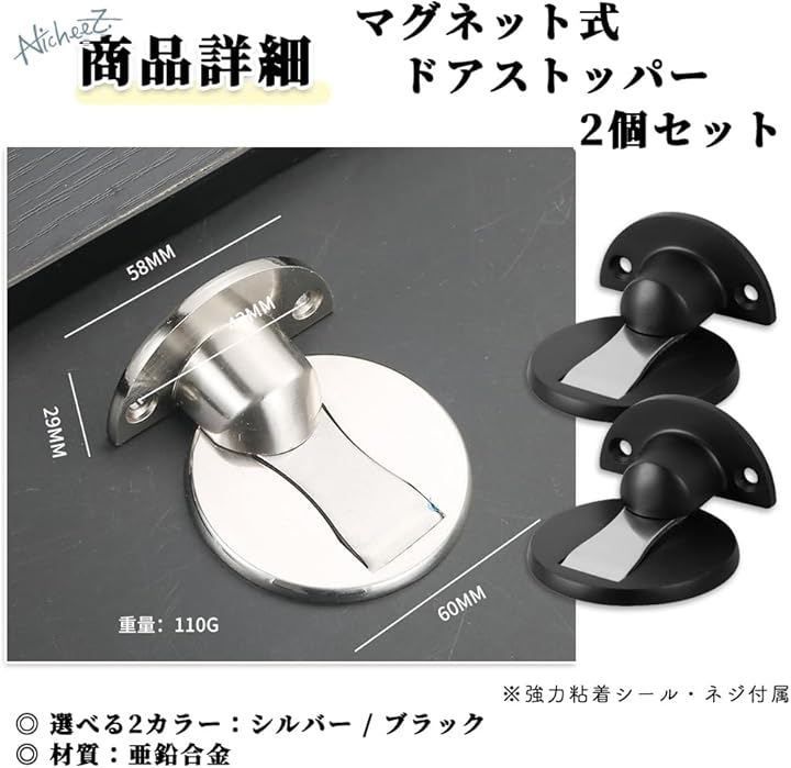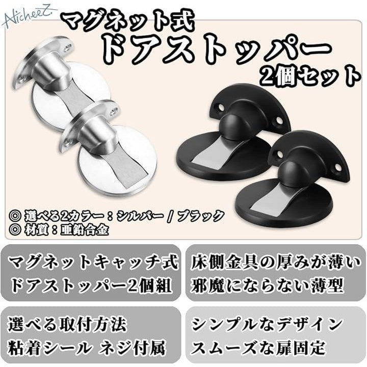 ドアストッパー マグネット式 キャッチタイプ 扉止め 2個セット