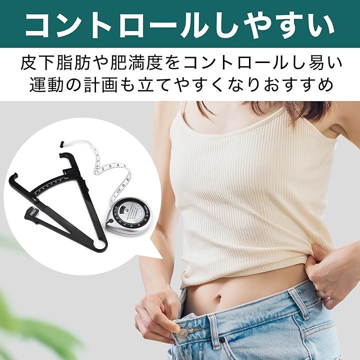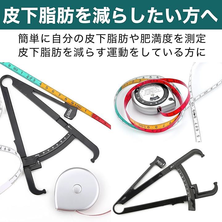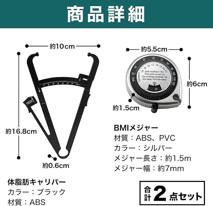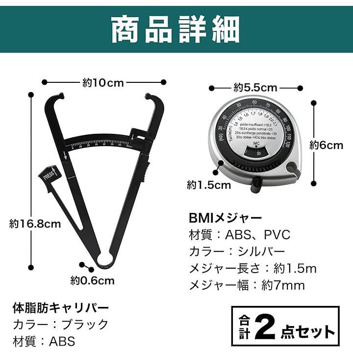 EdisonBrain BMI 測定 巻尺 体重 キャリパー 皮下脂肪 メジャー 体脂肪 定規 2点セット 0-70mm