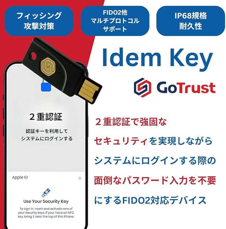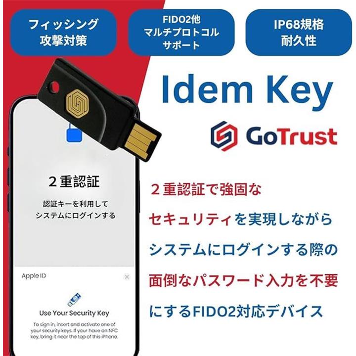 互換品 Idem Key アイデムキー Type A 2重認証用 セキュリティーキー パスワードレス認証 フィッシング対策 ハッキング対策 アカウント乗っ取り 防止 マルチプロトコル FIDO2 U2F PIV OTP OpenSSL