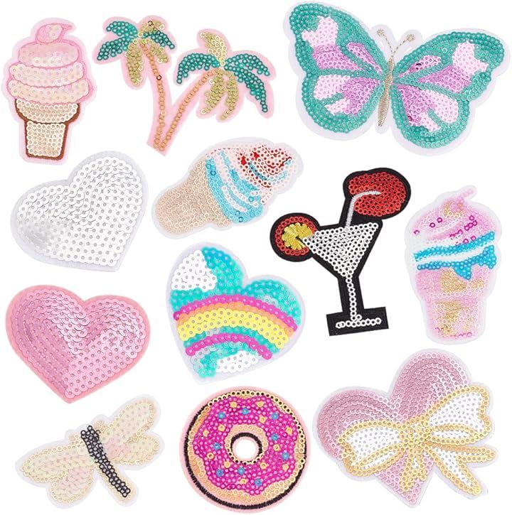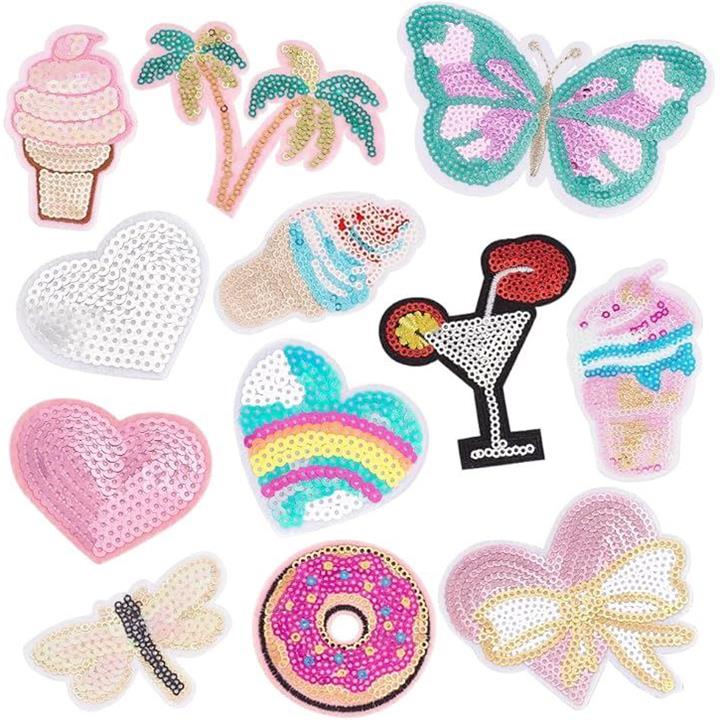 12枚セット 53x65mm クリスマス装飾刺繍アイロンワッペン 女の子 アップリケ 刺繍パッチ アイロン接着 小さい サイズ ピンク かわいい 装飾パッチ パッチステッカー 可愛い装飾 飾り アクセサリー 手作り DIY手芸用 貼り付け 縫い付け