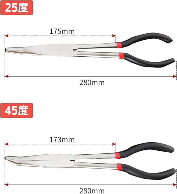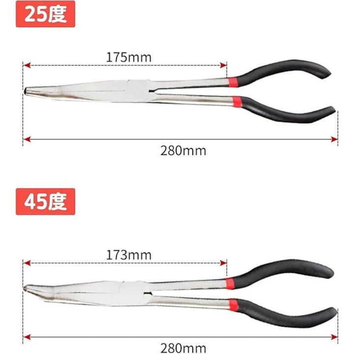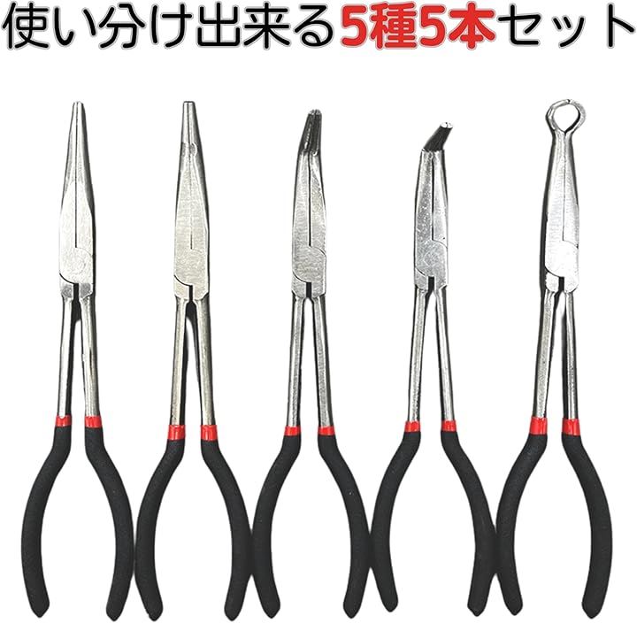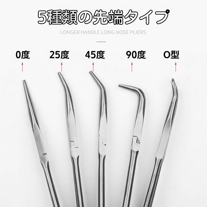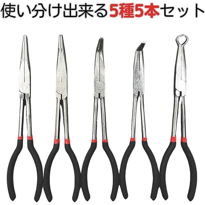 TikTrunk ラジオペンチ ロング プライヤー 先曲がり 0度 25度 45度 90度 O型 5本セット