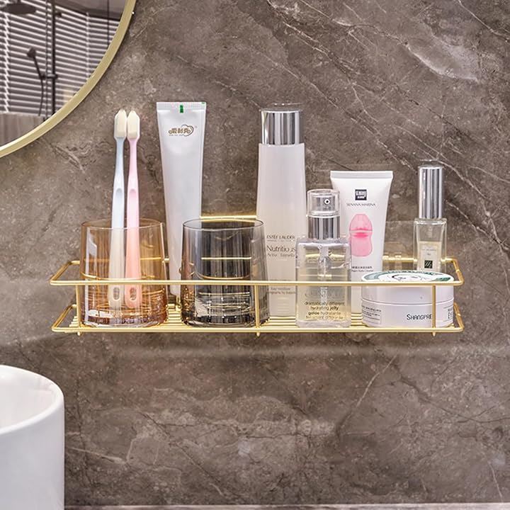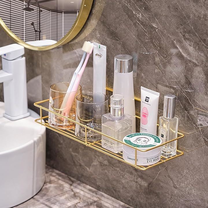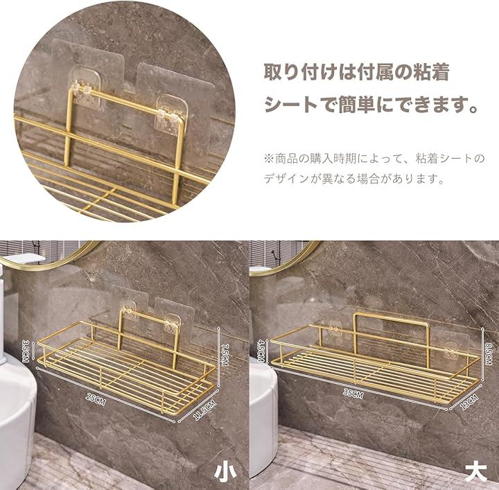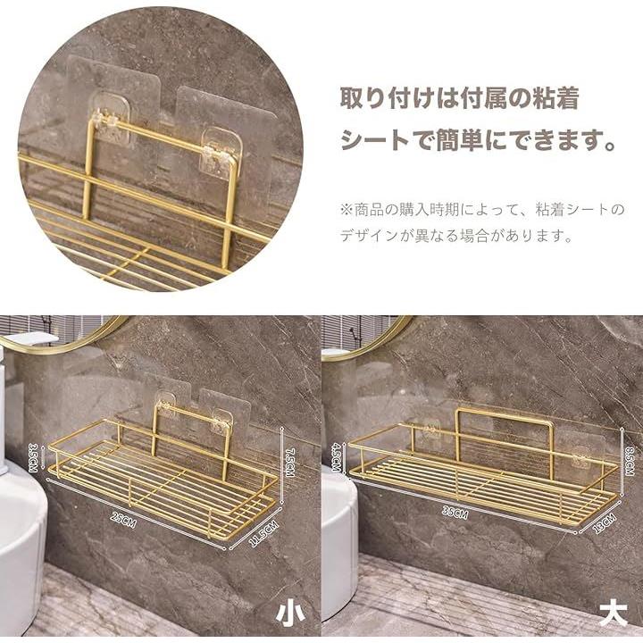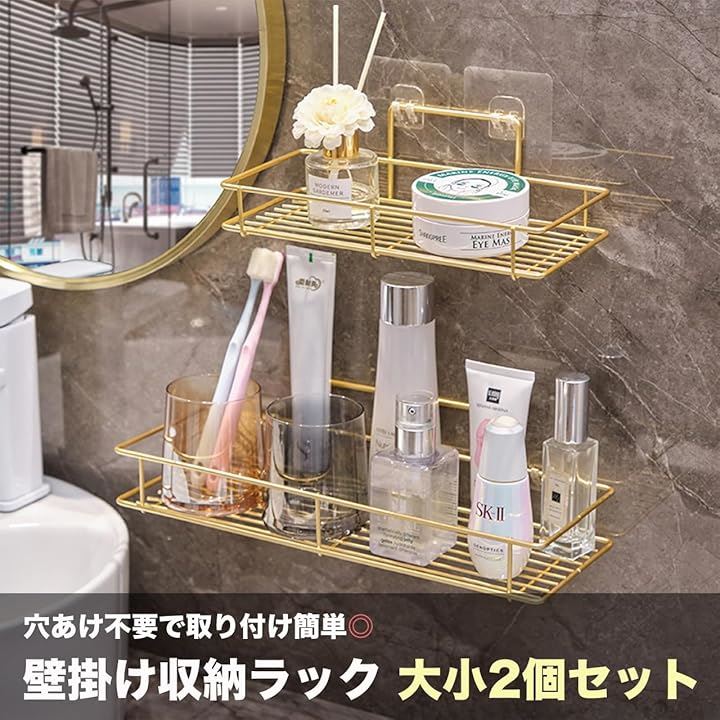 洗面所 収納 ラック 大小2個セット フレーム 強力 粘着 穴あけ不要 壁掛け 浴室 バスルーム 化粧品 歯磨き コップ 収納棚 バスケット 小物 整頓