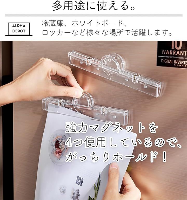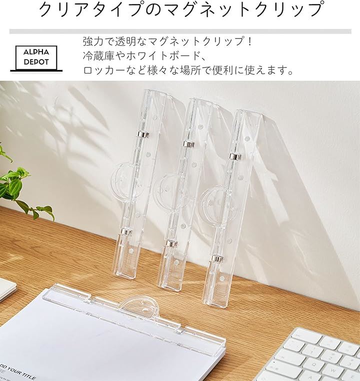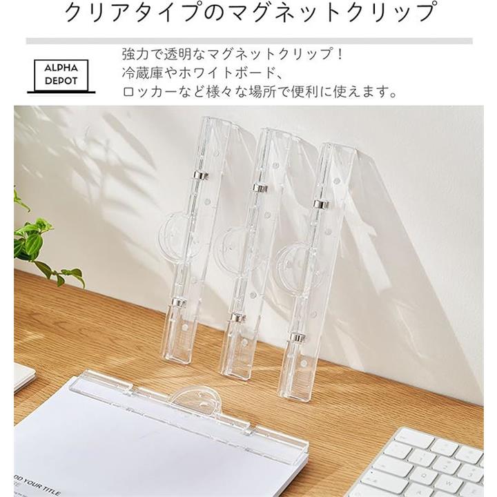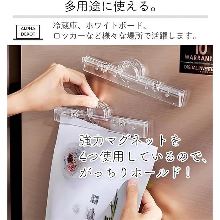 マグネットクリップ 強力 マグネットバー 磁石 ホルダー 冷蔵庫 ホワイトボード キッチン 会議 授業 クリア x 4個セット
