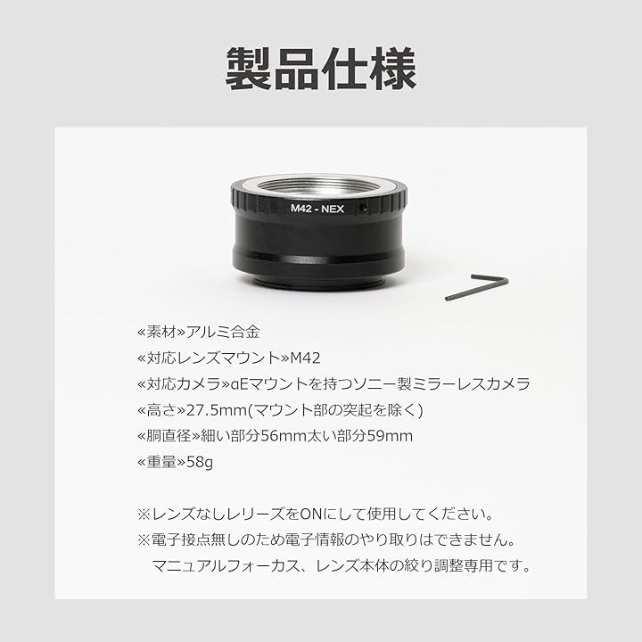 マウントアダプタ― M42 レンズを ソニーEマウント用に変換 オールドレンズに