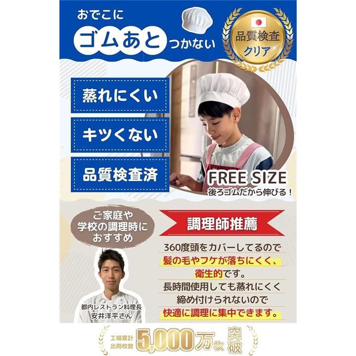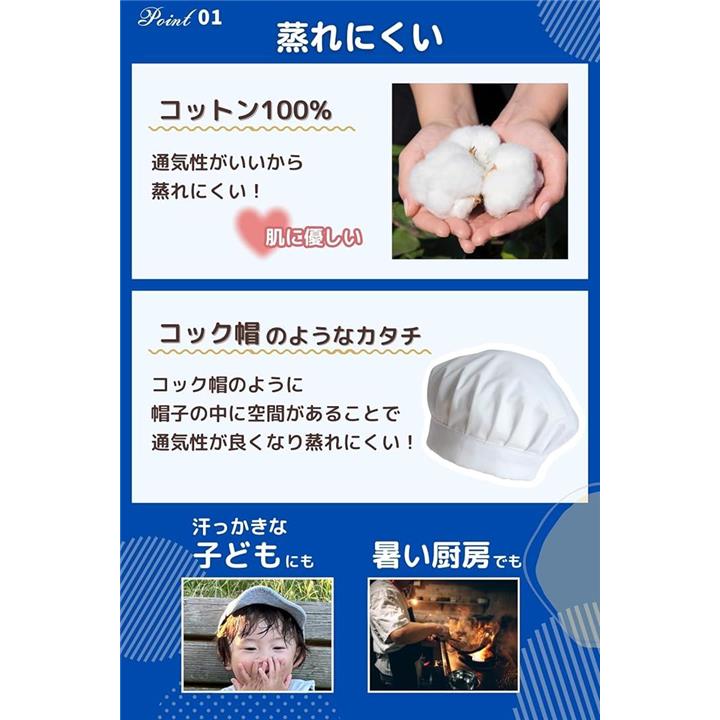 調理師推奨 品質検査済大人兼用 ゴムのあとつかない 給食帽子 コットン100%