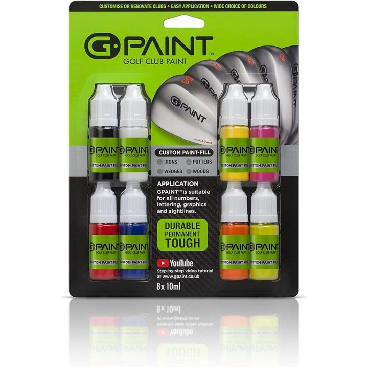 G-Paint ゴルフクラブ用ペイント 8本セット (黒 白 赤 青 黄 ピンク オレンジ 緑)簡単タッチアップ&カスタマイズ 塗装 修理 クラブが復活 長持ち ギフト |