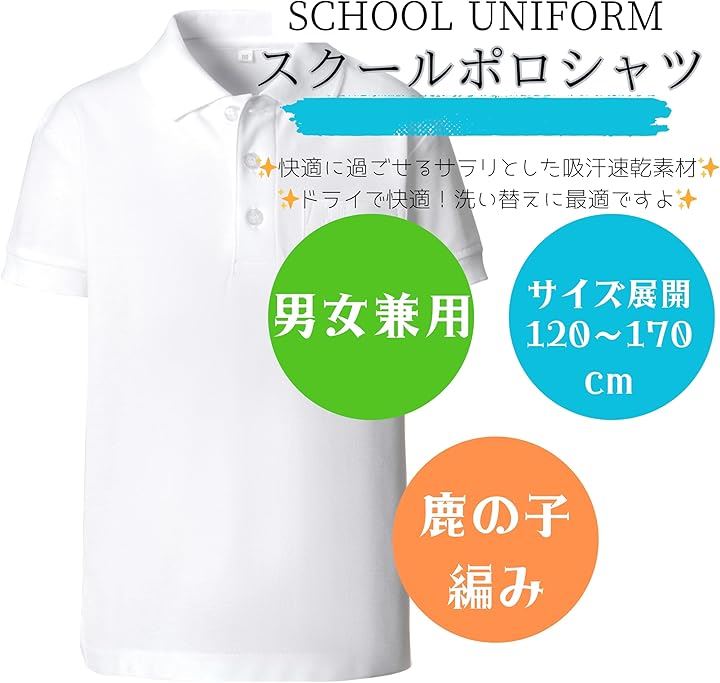 学校生活を楽しく、さらに快適にするための心強い味方です 「今すぐカートに追加してスクールライフを応援」 お子さまの学びと成長をサポートする《ドライ》で《吸汗速乾》の鹿の子編みスクールポロシャツをお選びください 学校指定にも対応し、シンプルながら機能的なデザインでどんなシーンでも使いやすい一着です 今すぐカートに追加して、お子さまの新しい学びのステージを応援しましょう。