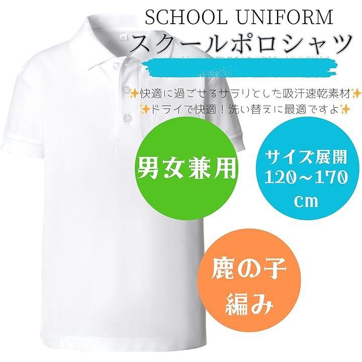 また、このシンプルで清潔感のある鹿の子編み素材のデザインは、通学だけでなく塾や冠婚葬祭など、さまざまなシーンで活躍します 「新入学や新学期に最適な一着」 新入学や新学期の準備にも、このスクールポロシャツは最適です 《洗いがえ》用として複数枚揃えておくと、毎日の通学がより快適になります。