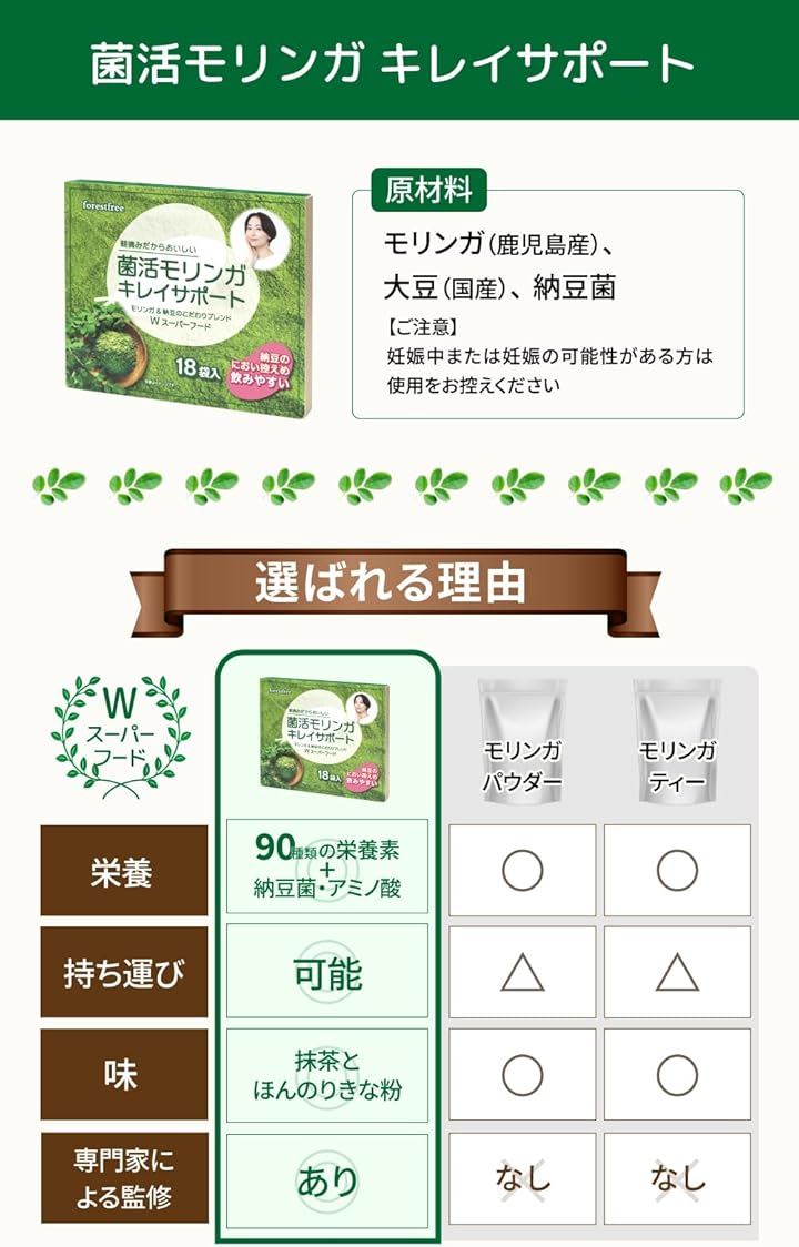菌活 モリンガ キレイサポート モリンガ&納豆 18包 forestfree