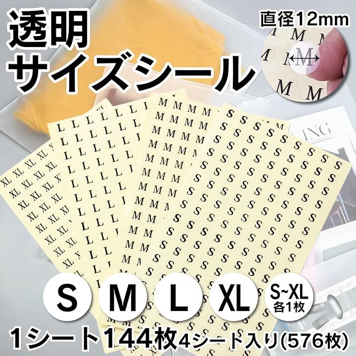 サイズシール 業務用 アパレル 丸 透明 144面 4枚 12mm a658