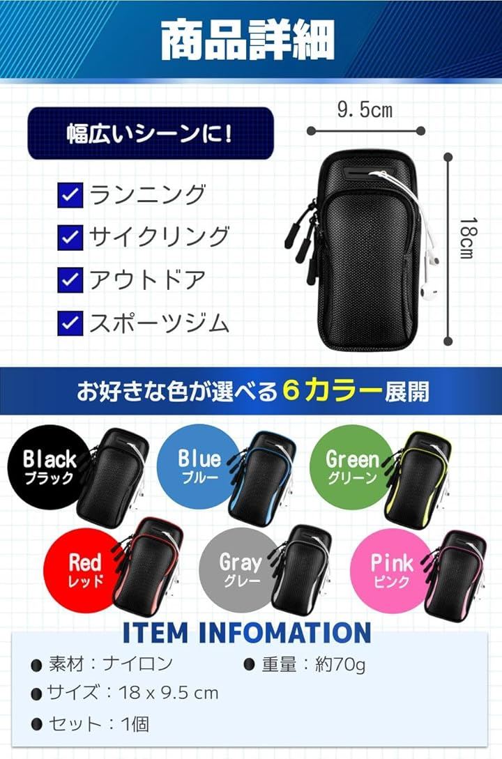 互換品 ランニング スマホケース アームバンド 携帯 スマホホルダー 腕 ポーチ