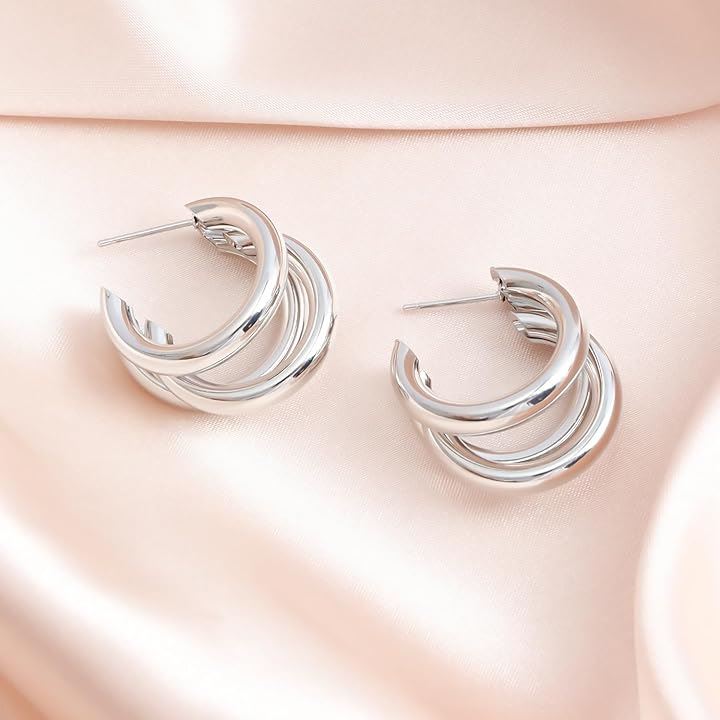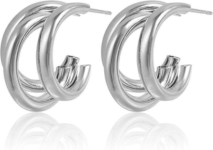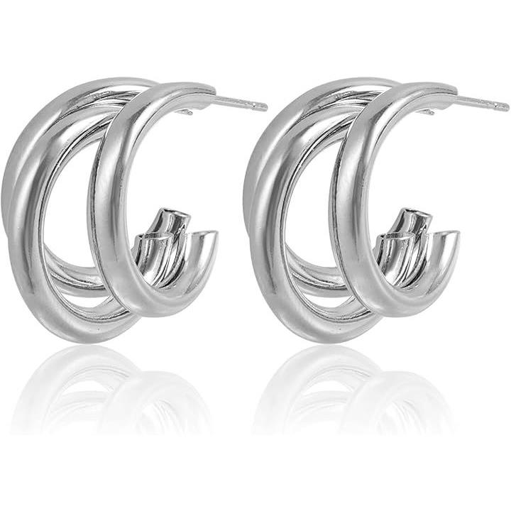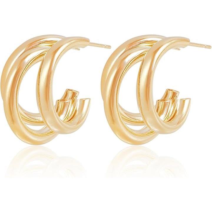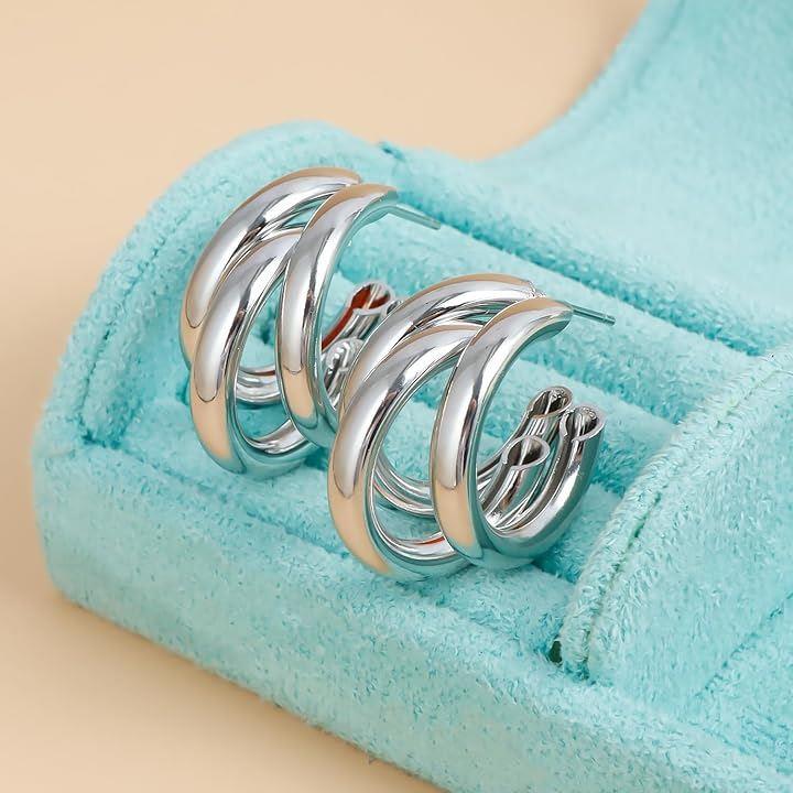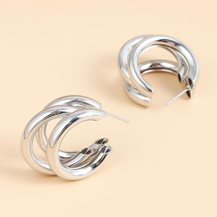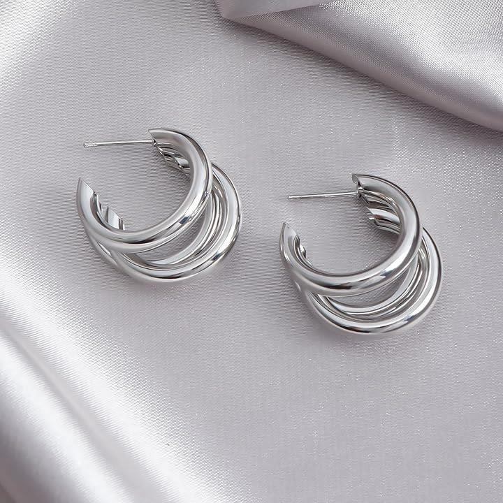 ピアス 三連リング 存在感あり 韓国ファッション 両耳用2つ入り 人気 レディース アクセサリー