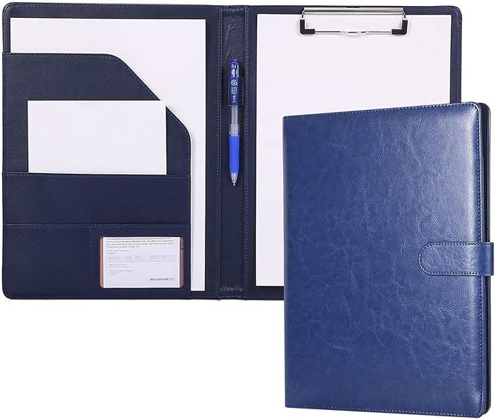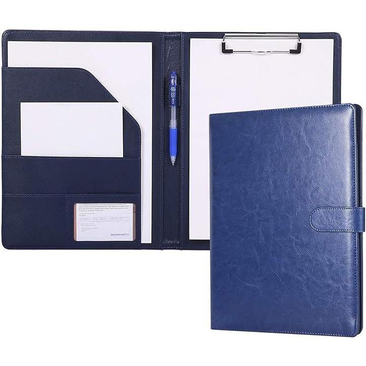 クリップボード クリップファイル A4 2つ折り バインダー 書類 フォルダー PUレザー ブルー ペンホルダー付 オフィス用品 事務用品