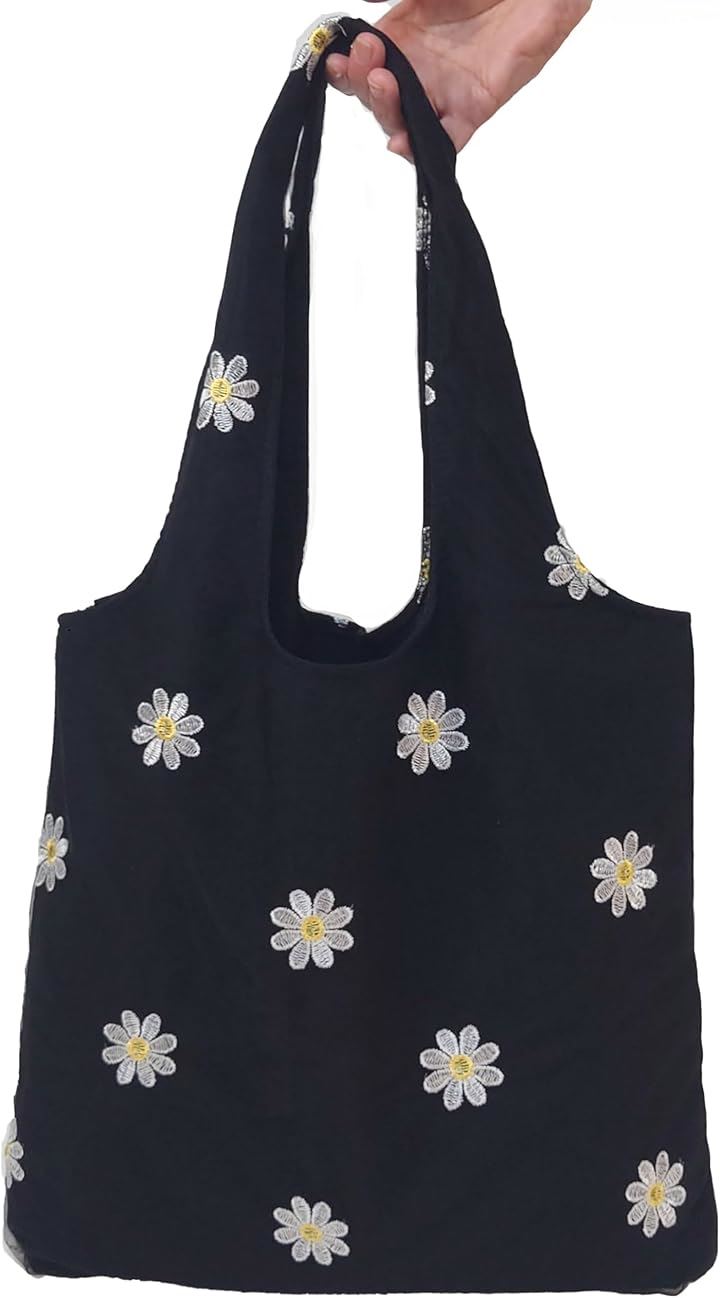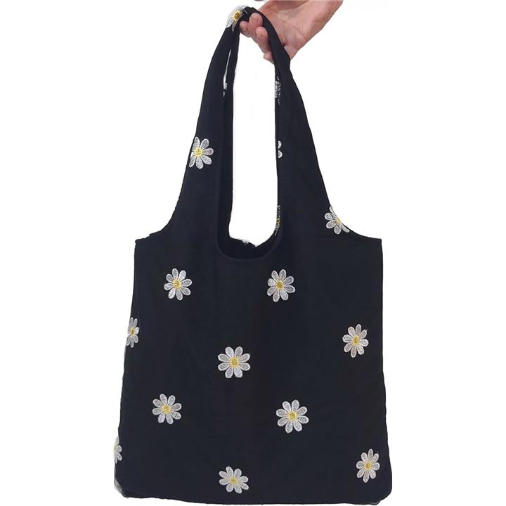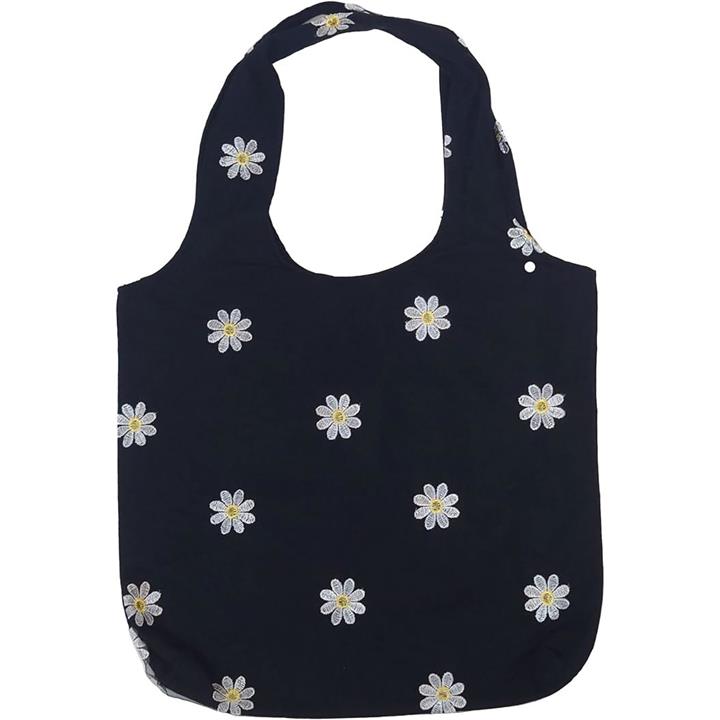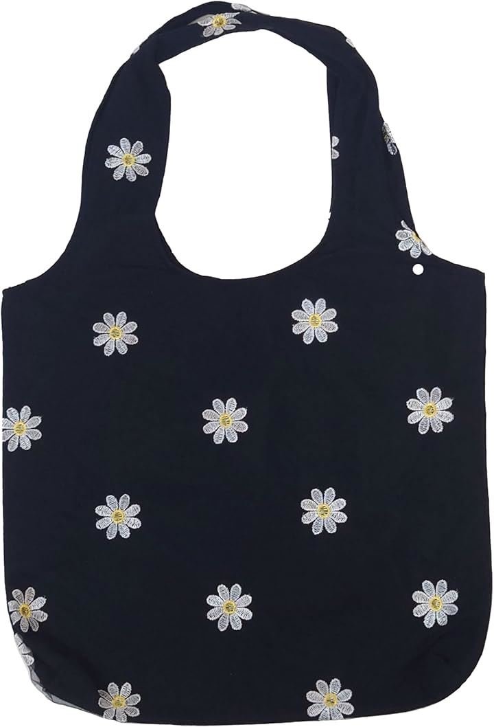刺繍 マーガレット トートバッグ 通勤 通学 カジュアル ガーリー 大人 かわいい 軽量 大容量 ブラック