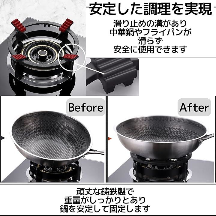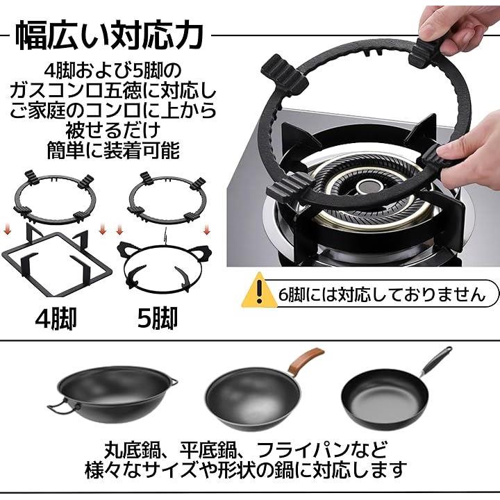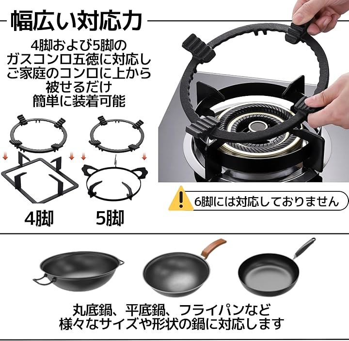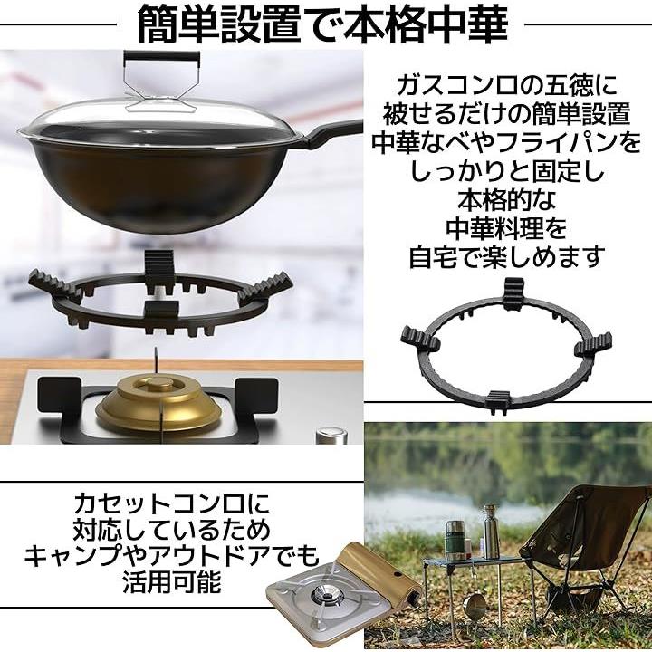 中華鍋 五徳 サポートリング ガスコンロ用 家庭用 鉄 滑り止め 4脚/5脚対応 脱着簡単