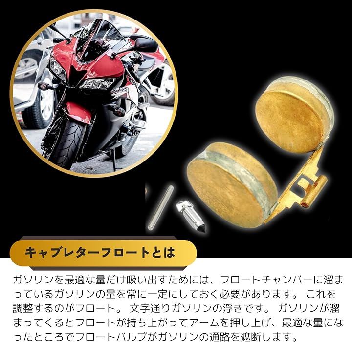 互換品キャブレター フロート ピン バルブ 付き バイク 汎用 エンジン オートバイ キット バイク用 リペア 取付 調整 固定