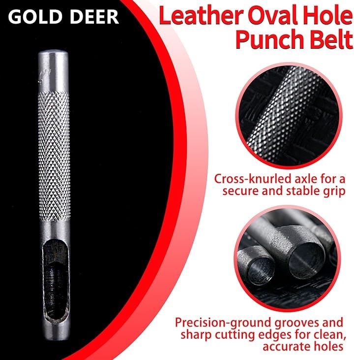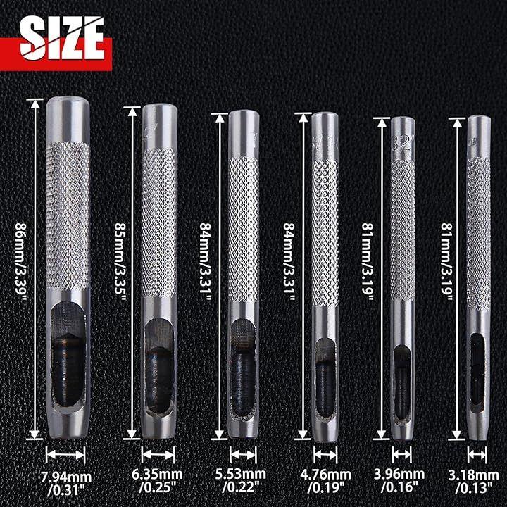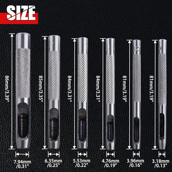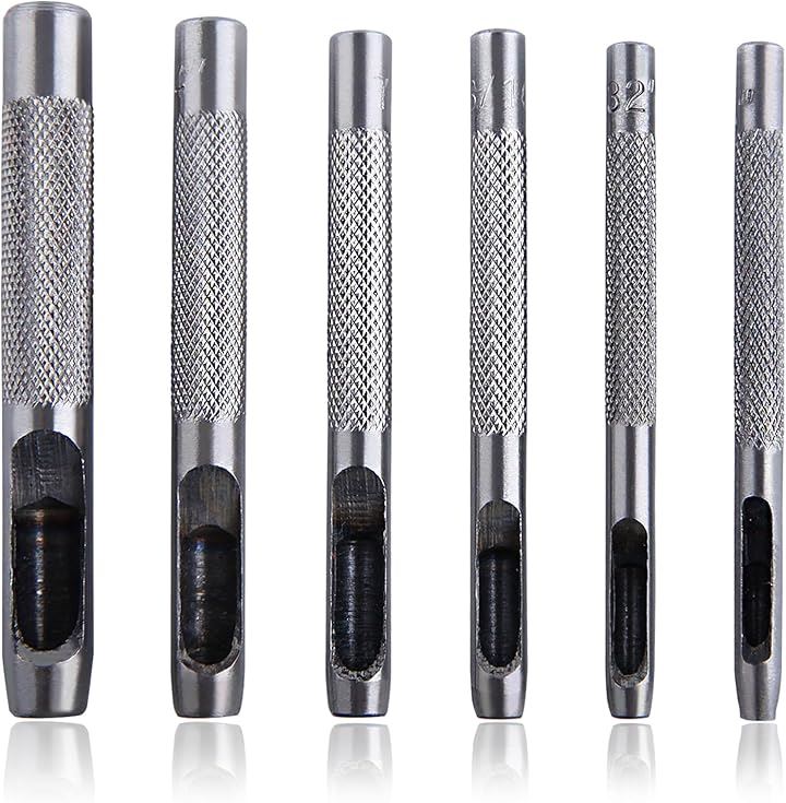 6個 中空穴あけパンチセット ベルト穴開けパンチ レザーパンチ 革製オーバルホールパンチベルト ベルト穴あけ器 1/8-5/16インチ 穴あけポンチ 革ベルト製造用 ソフト素材ベルト