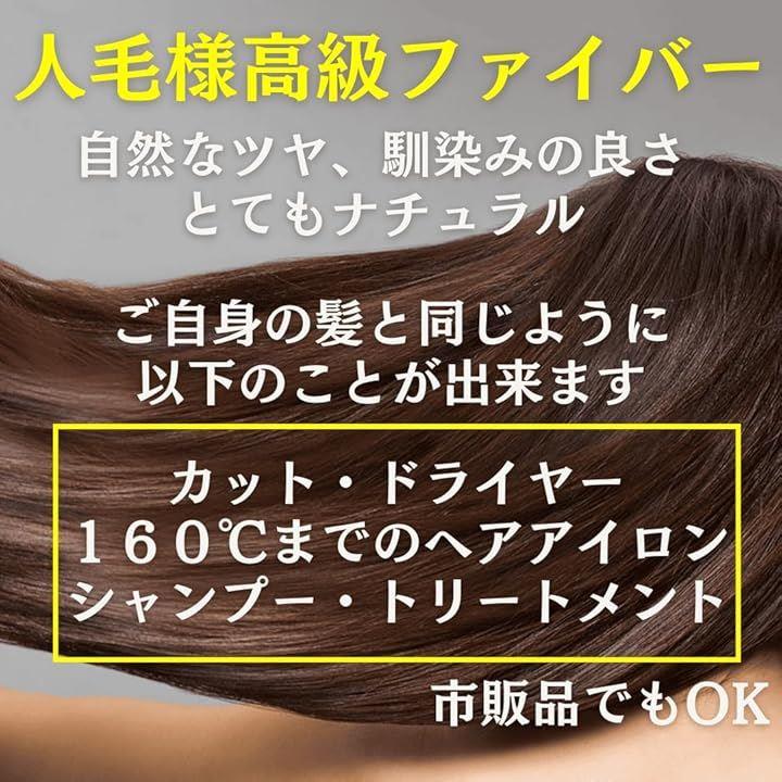 「日本人に近い髪質を再現」 (7)特徴:日本人に近い髪質の少し細く柔らかめの髪質の人毛様耐熱ファイバー / ヘアスプレーで固めていない状態で配送。