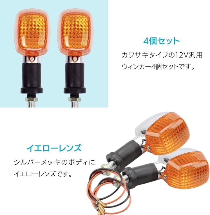 互換品 カワサキタイプ バイク ウインカー 汎用 バリオス エストレヤ W400 W650等 4個組