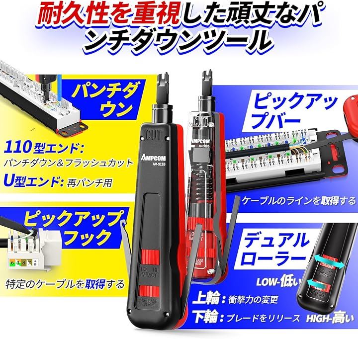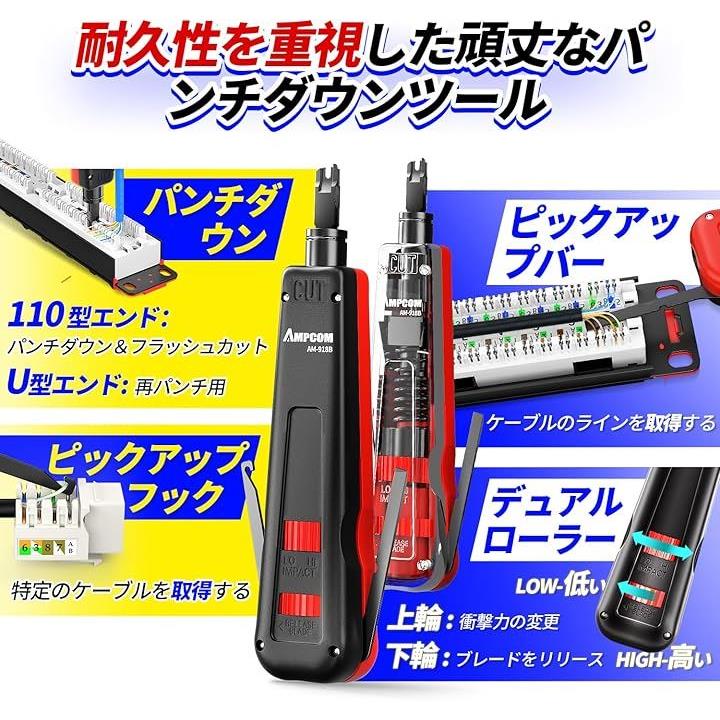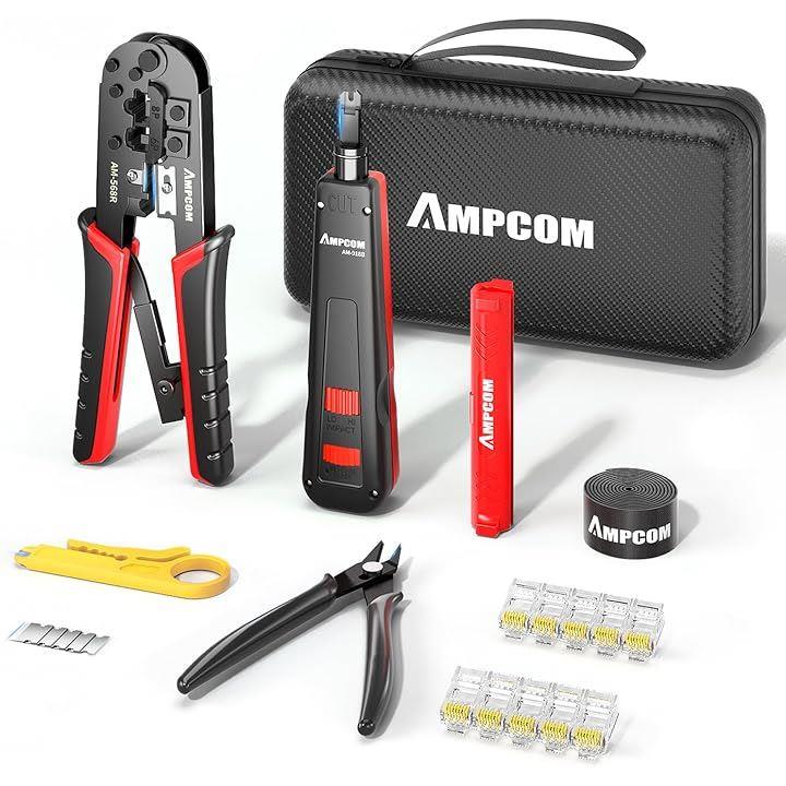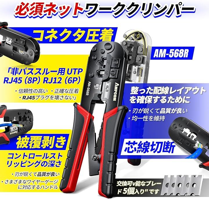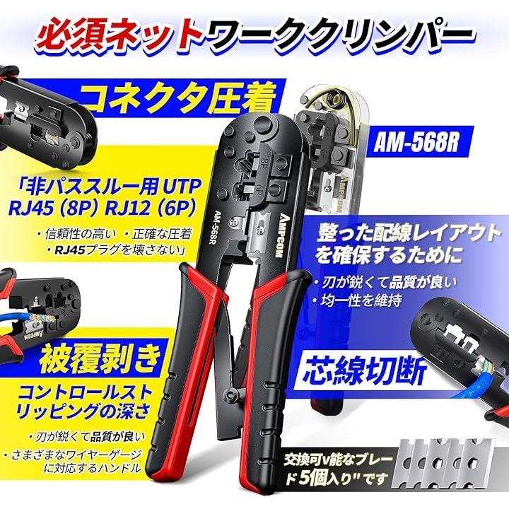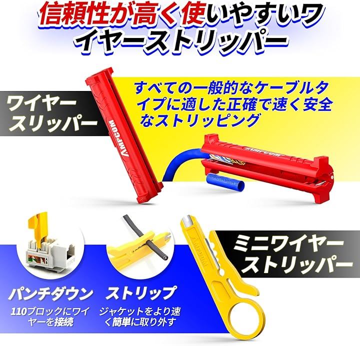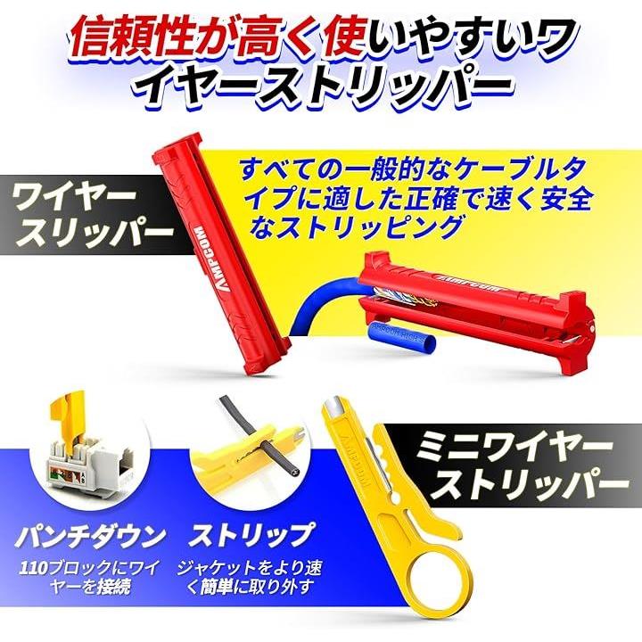 LANケーブル自作工具キット 7点工具セット圧着ペンチ プチダウン工具 外皮むき工具 CAT6 RJ45コネクタ 収納ケース付き