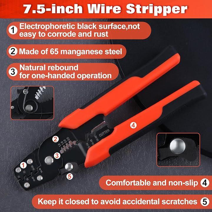 ワイヤーストリッパー 圧着機能付 切断可能 圧着工具 番線カッター 電工ペンチ エンジニア 多機能ペンチ 精密圧着ペンチ ケーブルストリッパー ハンドストリッパー 配線カット機能 配線作業 かしめ工具 電線カッター