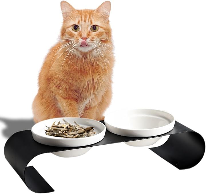 Modern neco吐き戻し軽減猫 食器 高さあり 食べやすいセラミック皿|おしゃれモダン台座 食洗機対応