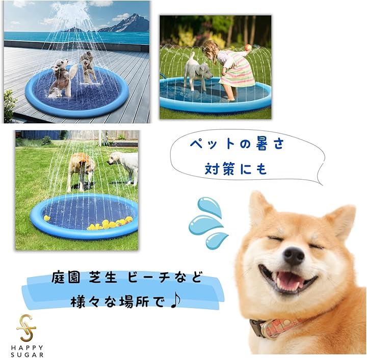 噴水マット 噴水プール 犬 浅い 小型犬 大型犬 子供 夏 水遊び 折り畳み 持ち運び