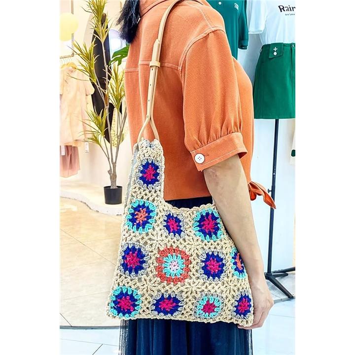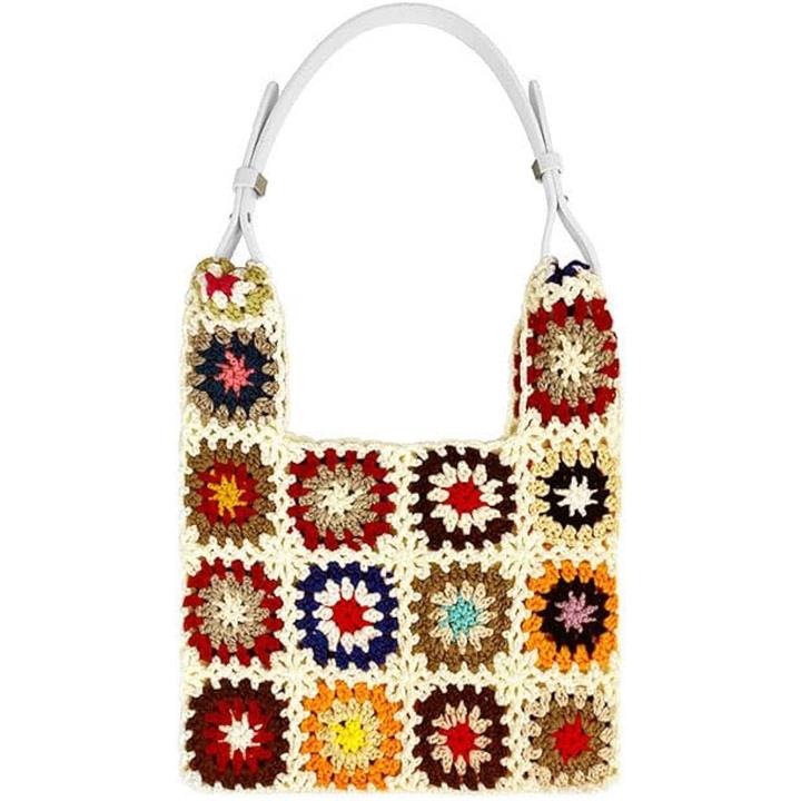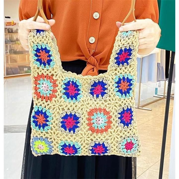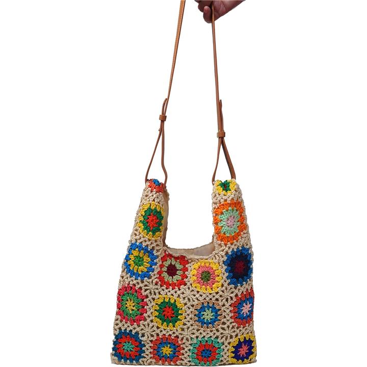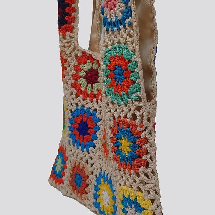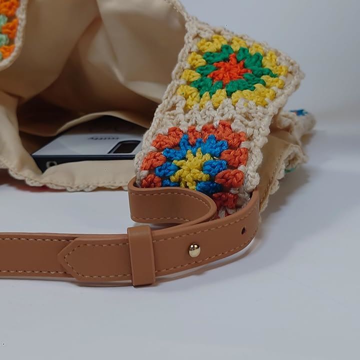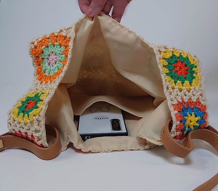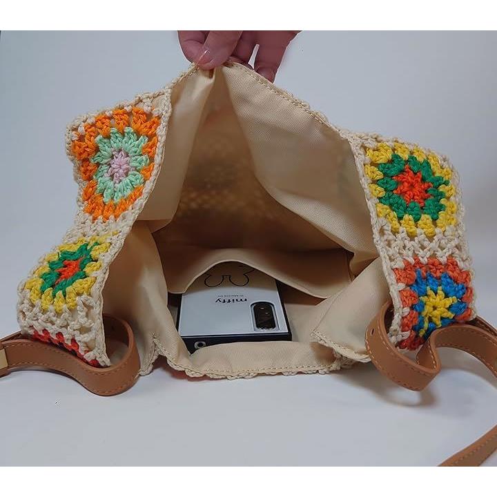 モチーフ編み ニットバッグ 裏地付き かわいい ガーリー ポップ フラワー スマホバッグ ベージュ
