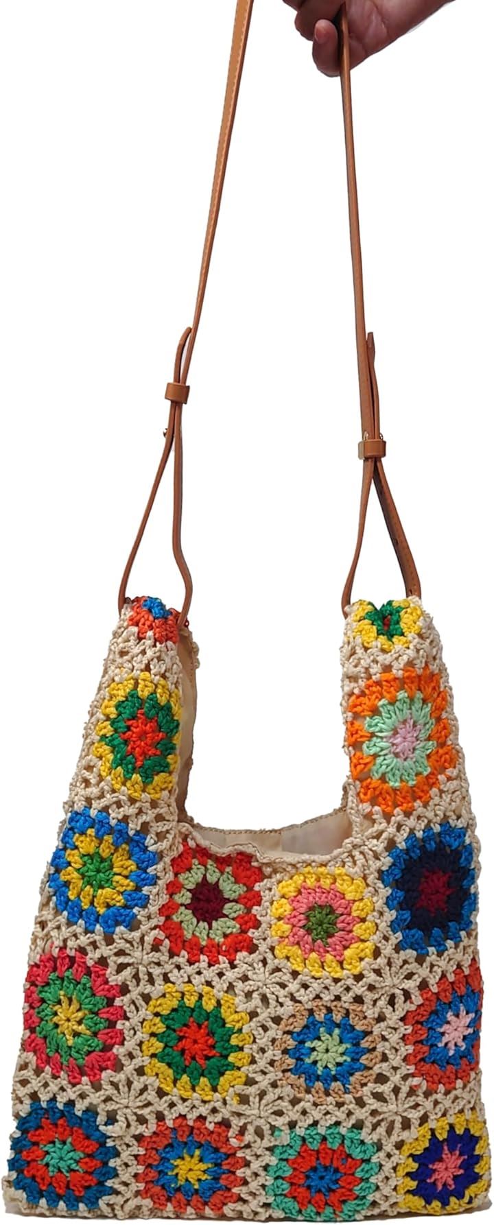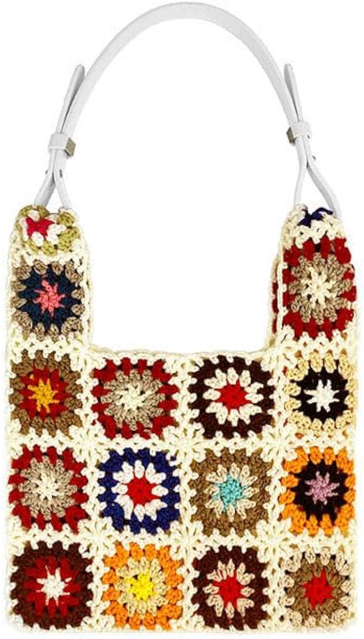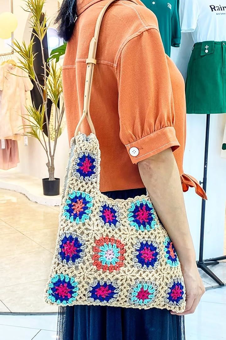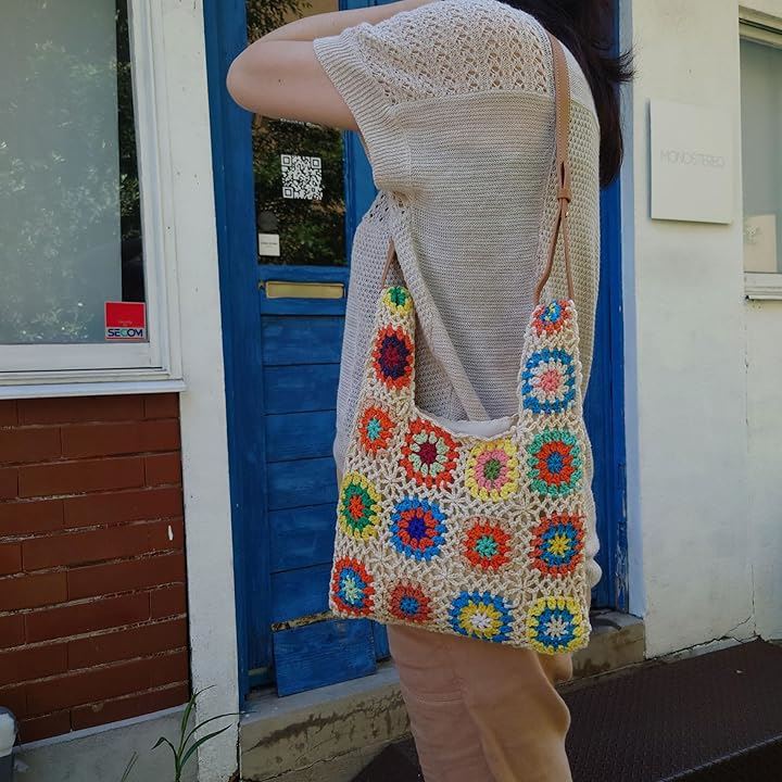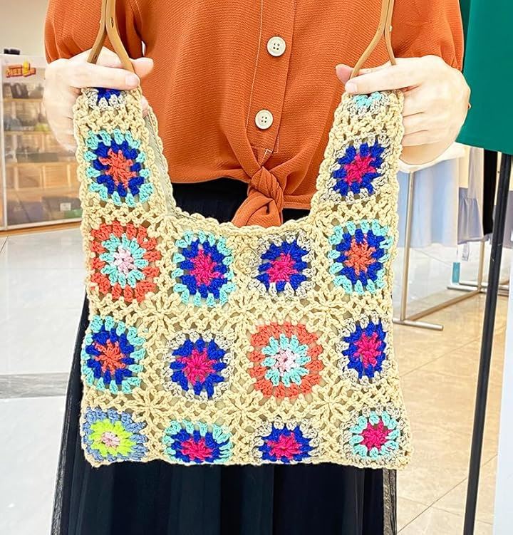 モチーフ編み ニットバッグ 裏地付き かわいい ガーリー ポップ フラワー スマホバッグ ベージュ