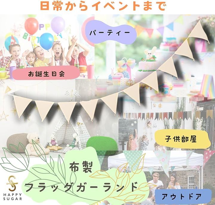 ガーランド 三角旗 フラッグガーランド飾り 装飾 誕生日 バースデー パーティー お祝い キャンプ 子供部屋 布 ナチュラル