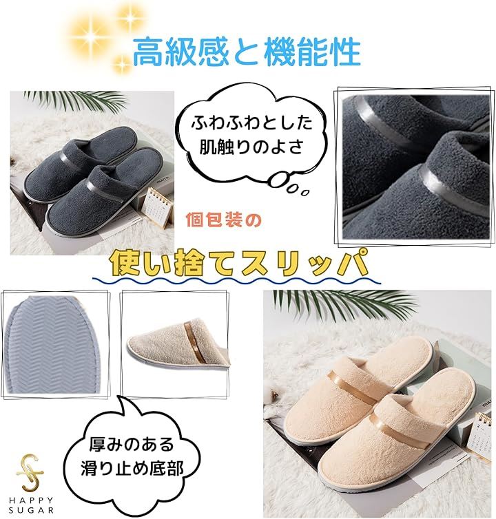 使い捨てスリッパ 個包装 5足セット ふわふわ ホテルスリッパ ルームシューズ 来客用 衛生的 高級 旅行 サロン 大きめ