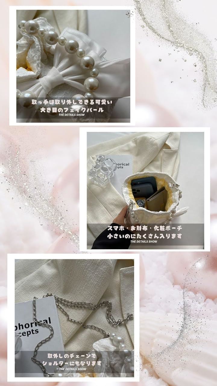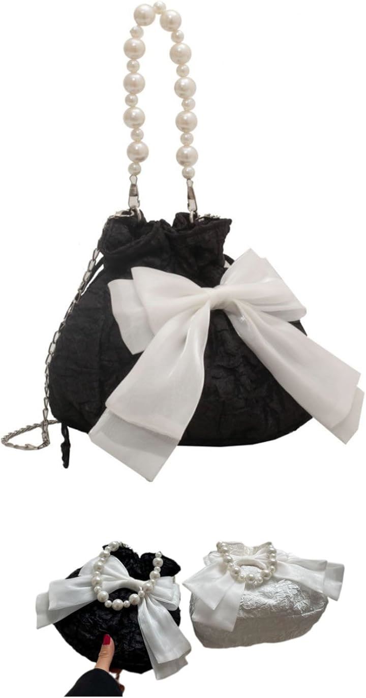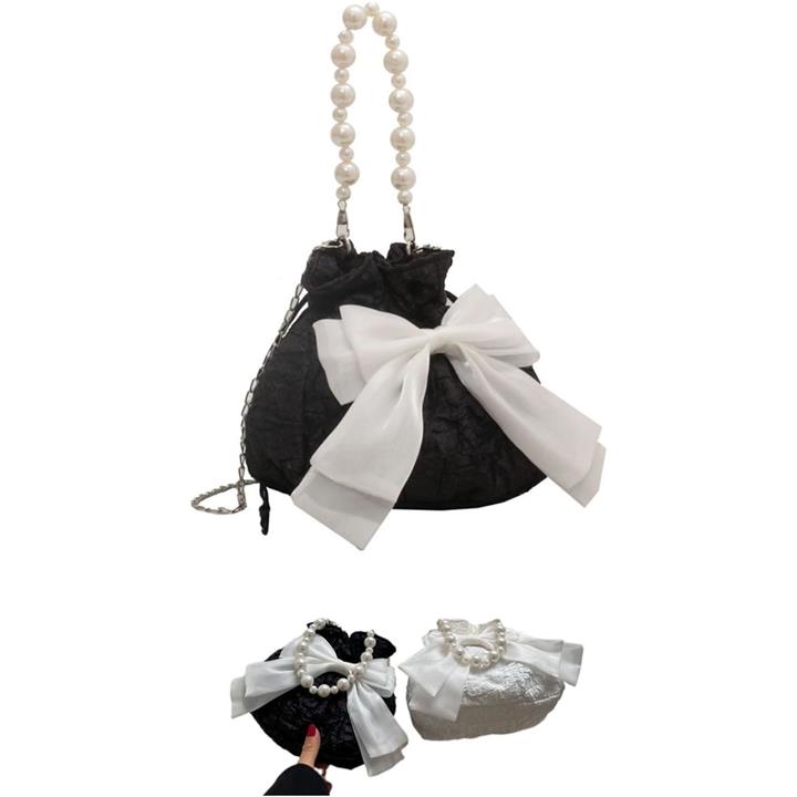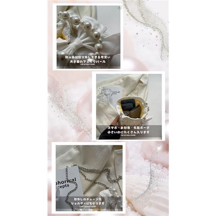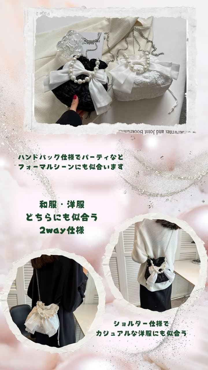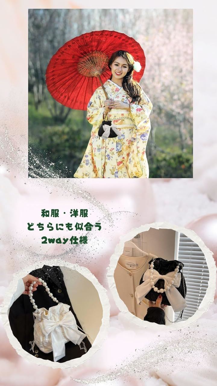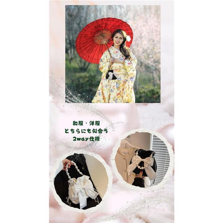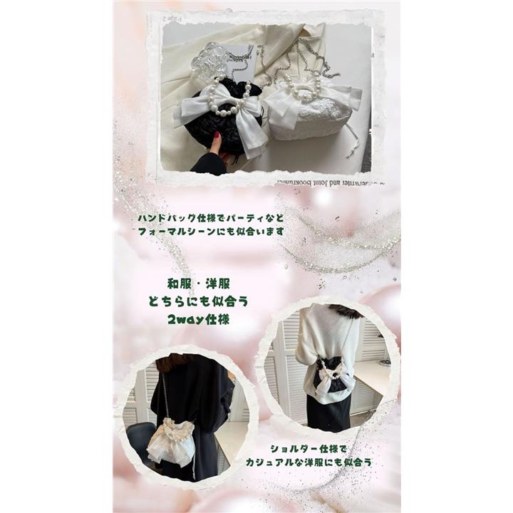 浴衣バッグ 巾着 パーティーバッグ パールバッグ 結婚式 リボンポーチ 小さめ 黒
