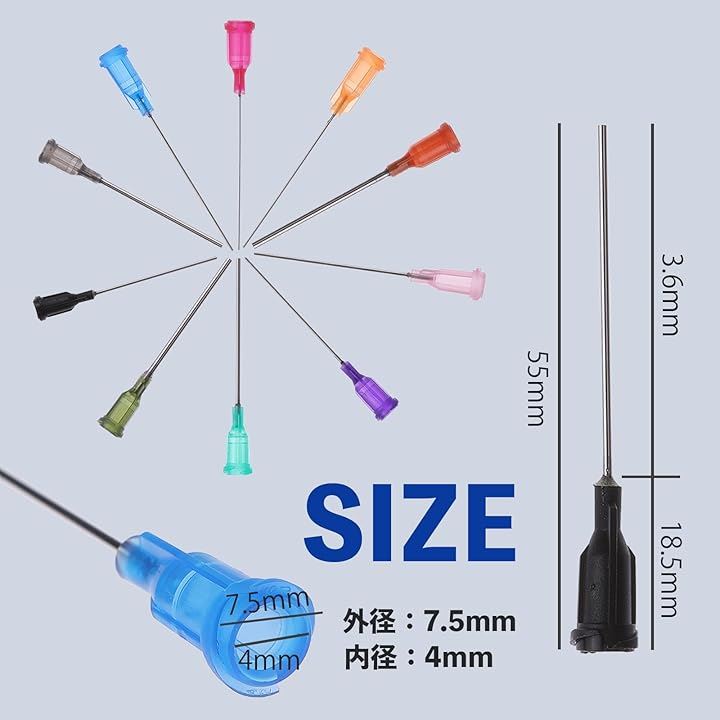 接着剤 ニードル 接着剤用ニードル 混合色 混合サイズ 替針 ディスペンサーニードル 55mm 80本 セット