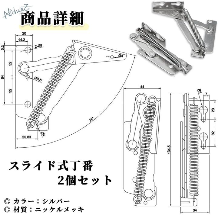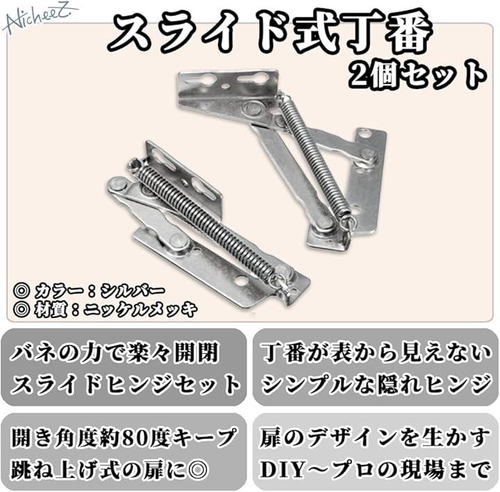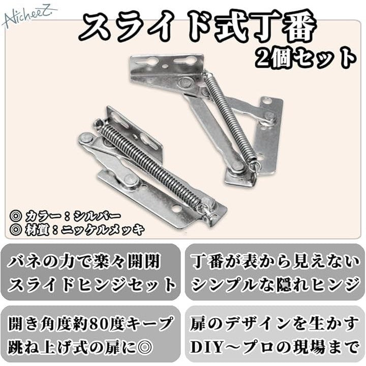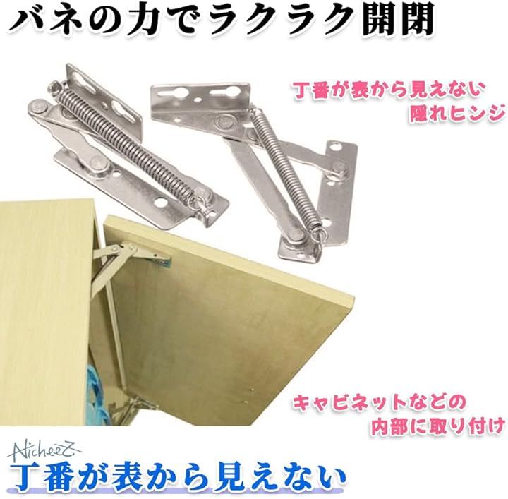 スプリングヒンジ ドア スライド 丁番 キャビネット 隠し 棚 扉 2点セット