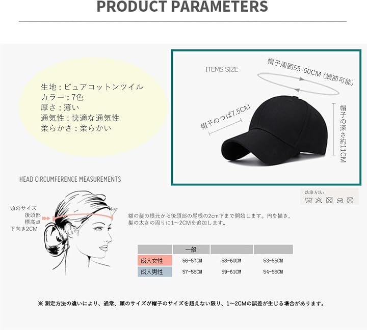 「サイズ」フリーサイズ 男女兼用 深さ:11cm、頭囲:56~60cm、ツバ:7.5cm