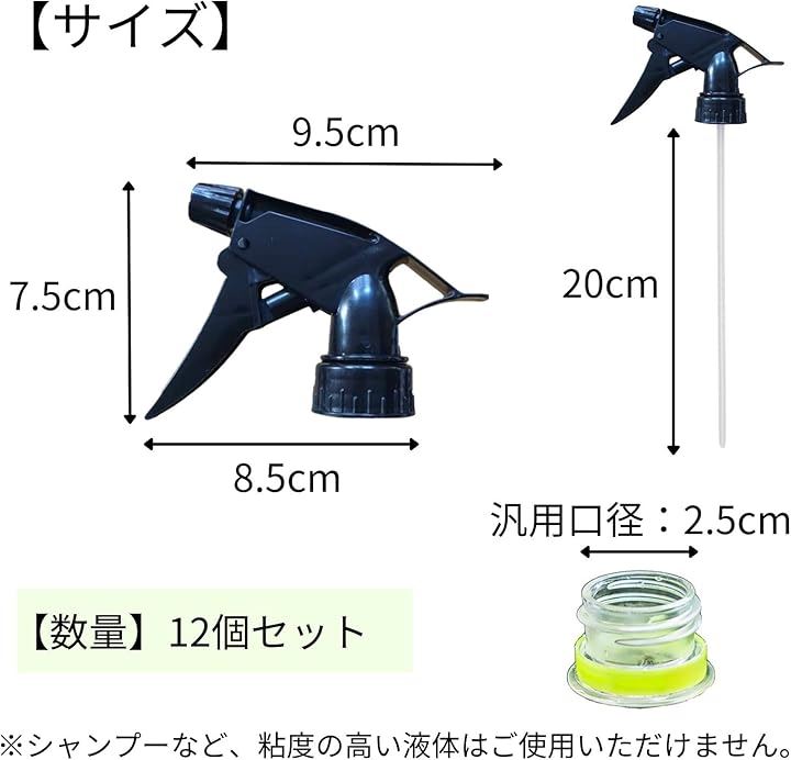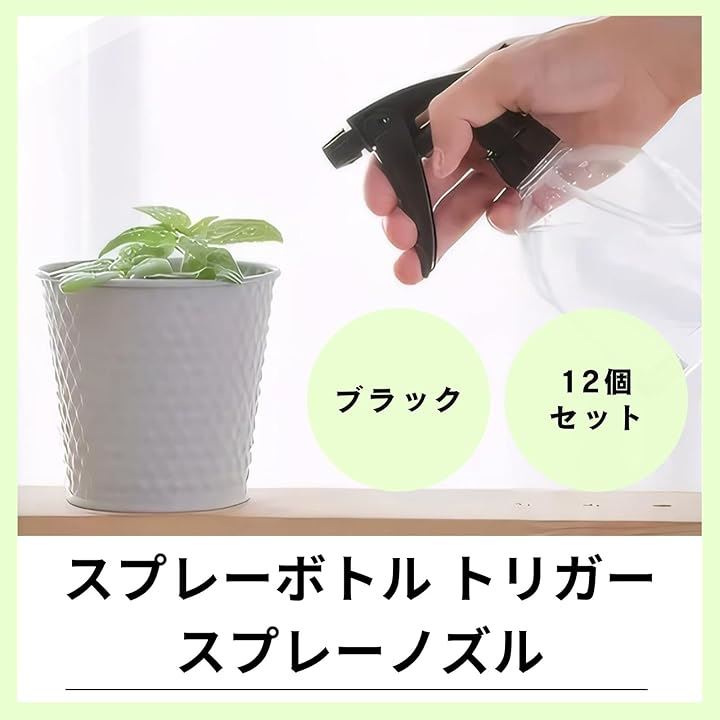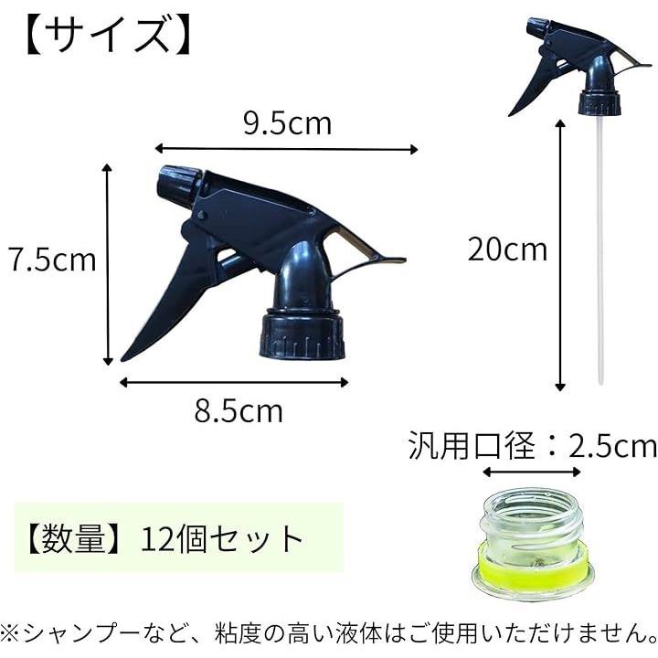 スプレーノズル スプレーヘッド 交換ノズル ペットボトル対応 霧吹き ストレート 調整ノズル 黒 12個セット