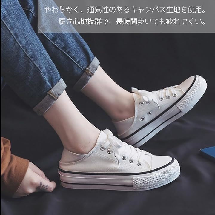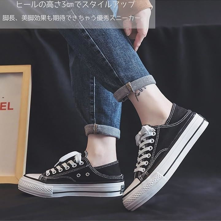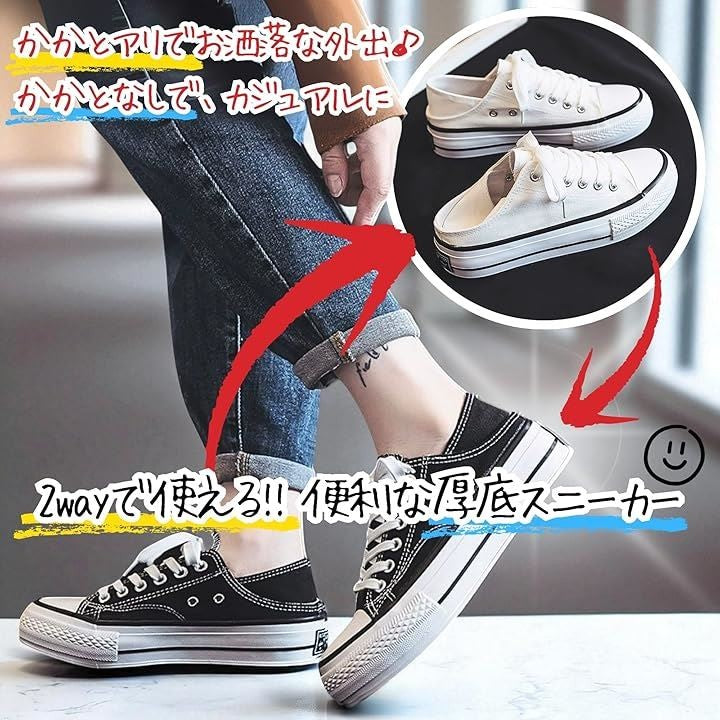 2way スニーカー 厚底 3cm かかとなし 着脱しやすい 脚長 韓国風 身長アップ かかとが踏める |
