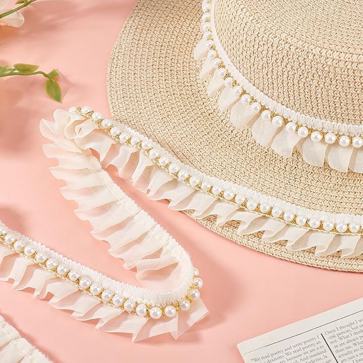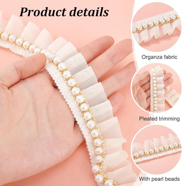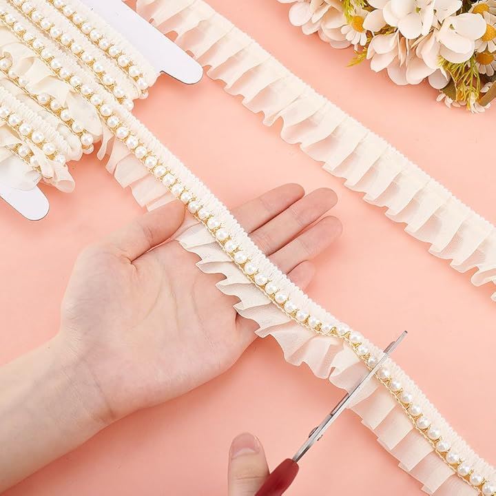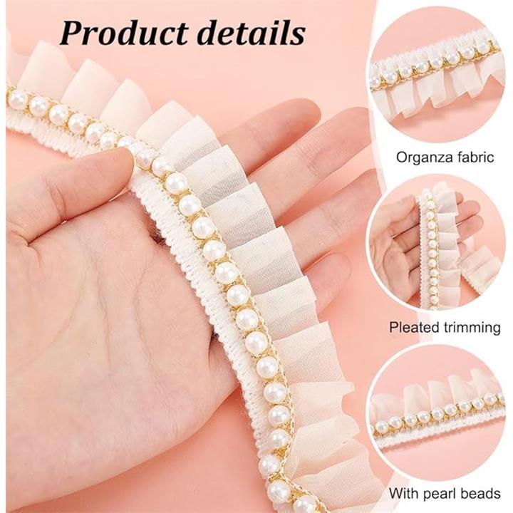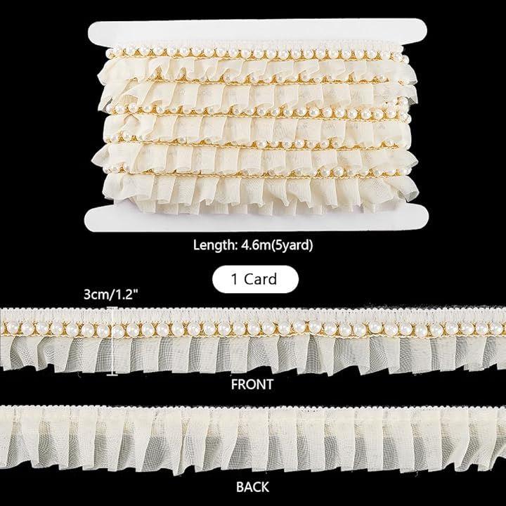 5ヤード 幅30mm パールトリム レースリボン レースフリルトリムリボン パール付き 太め 手芸 クラフトリース ラッピング用 アウトドア装飾 結婚式の装飾 DIY 手作り 装飾用 約4.5m/巻 オーガンザ ホワイト