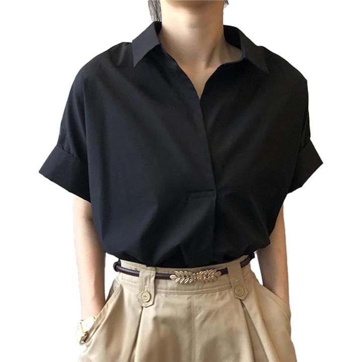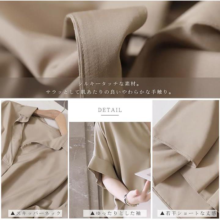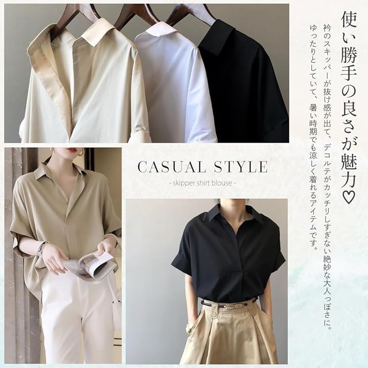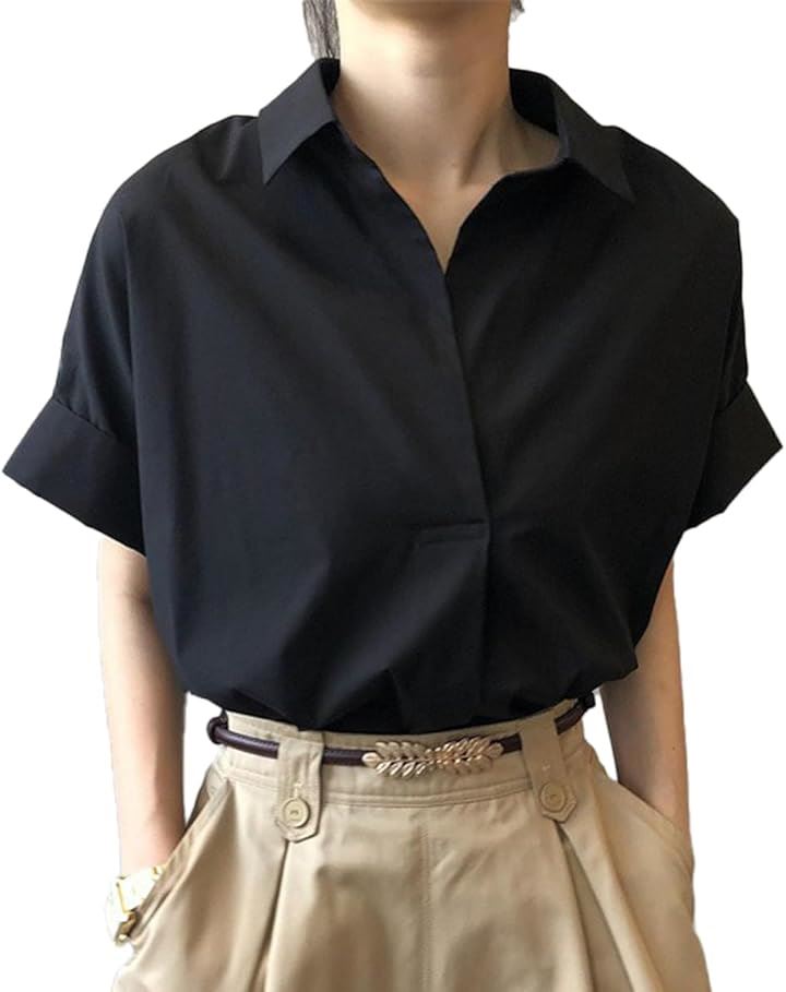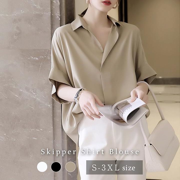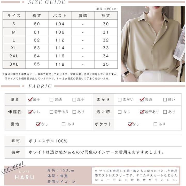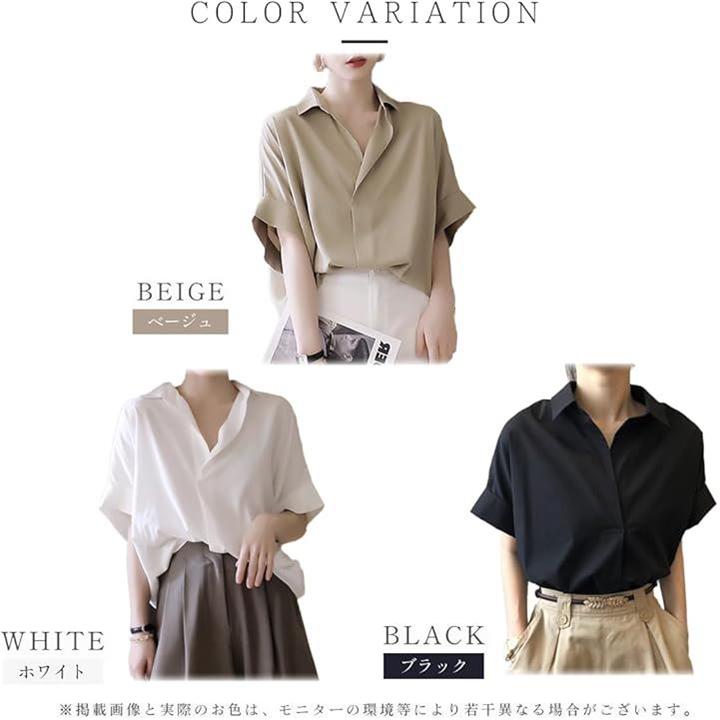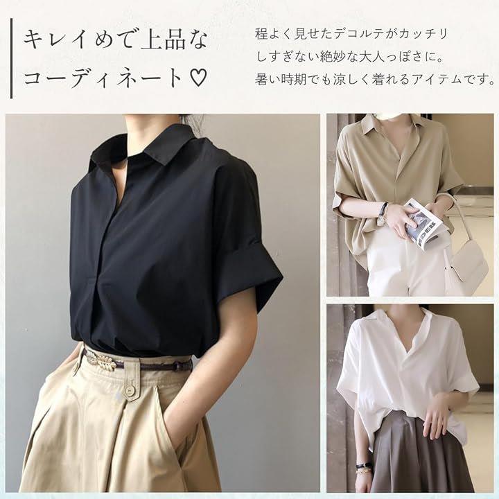 ウェアビー シャツブラウス ロールアップ袖 襟付き 半袖 ドルマンスリーブ オフィス レディース スキッパー Vネック シフォンシャツ オフィスカジュアル 無地 シンプル 開襟 ゆったり おしゃれ 可愛い 大きいサイズ