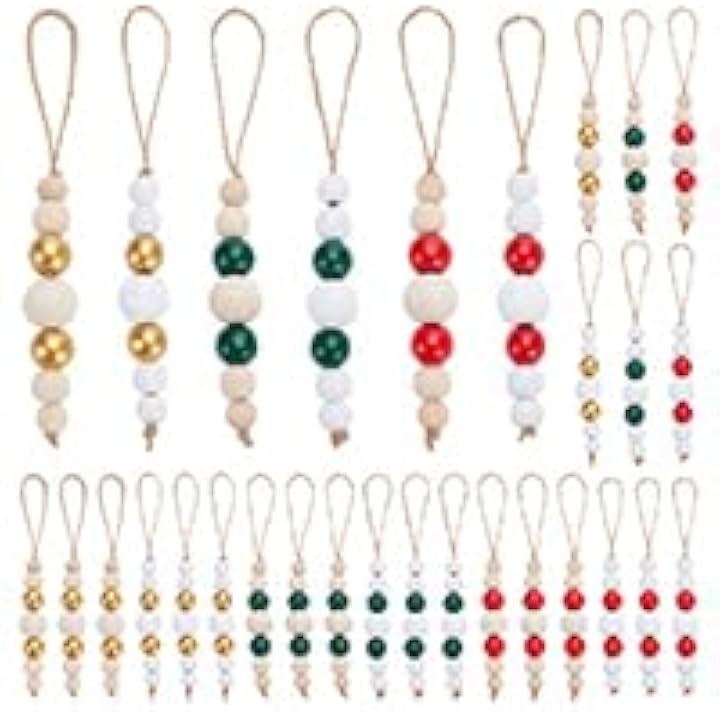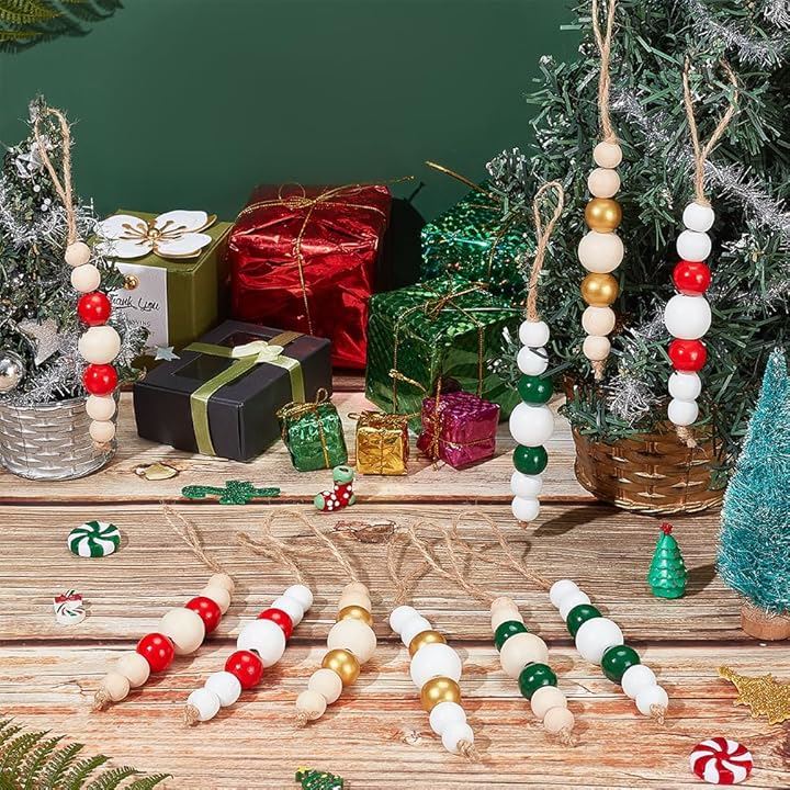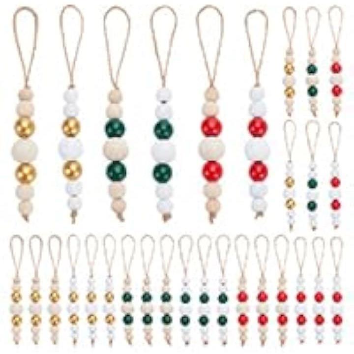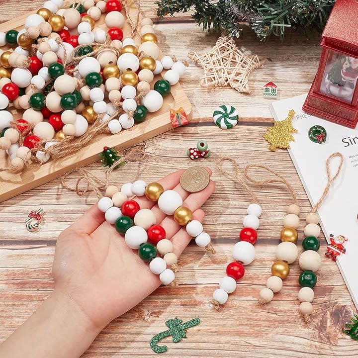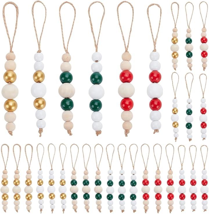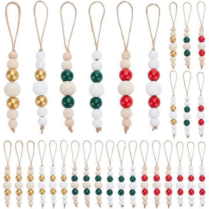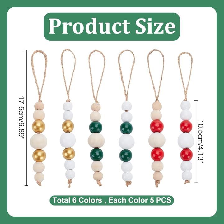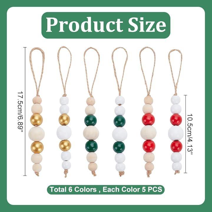 30個 6色 12/16/25/16/12cm 木製ビーズ ペンダント装飾 丸玉 ラウンド ラウンドルースボール ビーズジュエリー作成 吊り下げ飾り ハンドメイドパーツ DIY