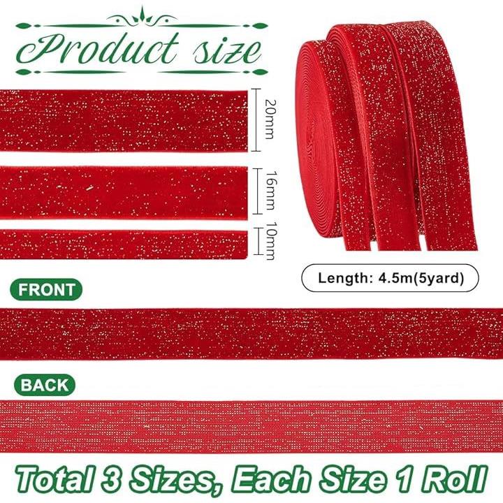 ブリックレッド 3ロール 4.5m/ロール 幅10/16/20mmベルベットリボンセット 薄い ソリッドシルク ウェディングブーケリボン バレンタインデー ギフト包装 ケーキボックス アクセサリー DIY手作り用品 リボン用 包装用