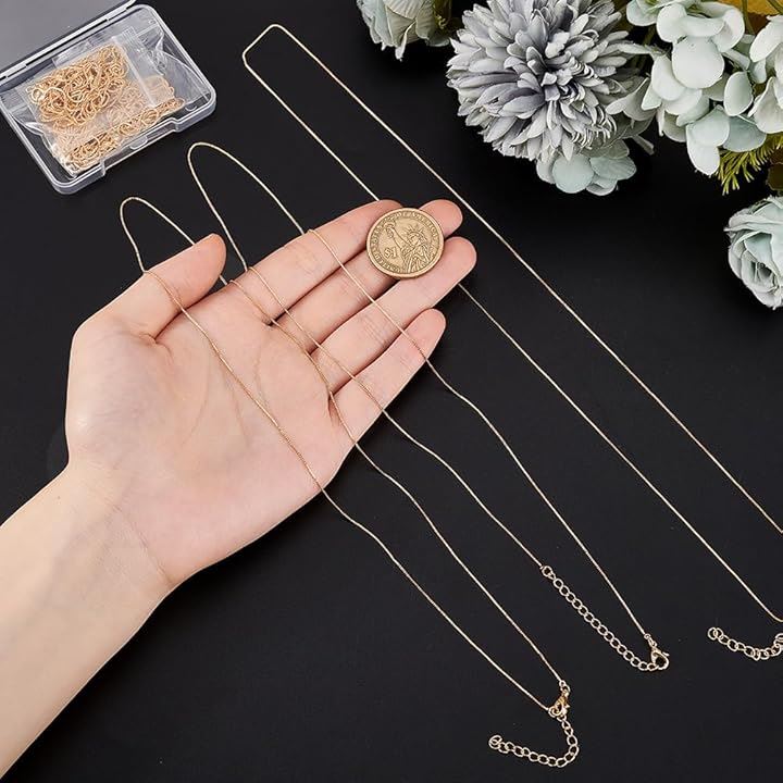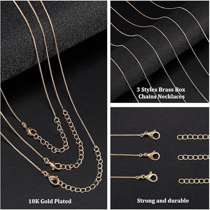 18Kゴールドメッキ ネックレスチェーン ステンレス 真鍮チェーン 完成品 ケーブルチェーン バルク ボックスチェーン 女性用 ジュエリー ブレスレット