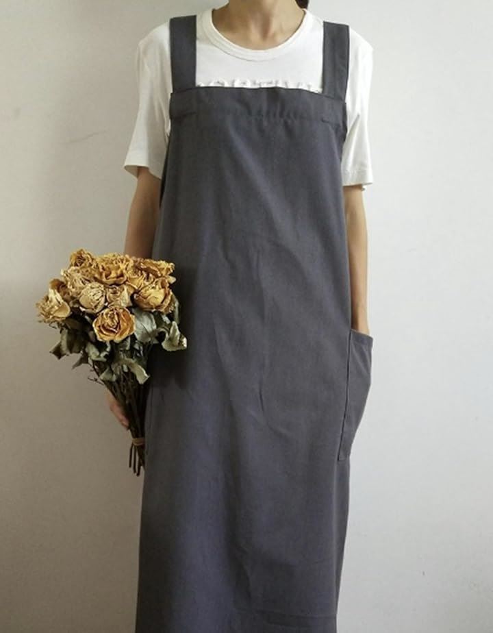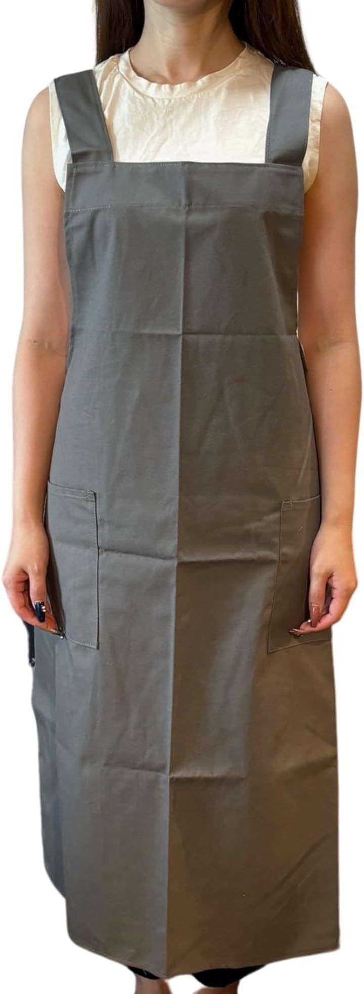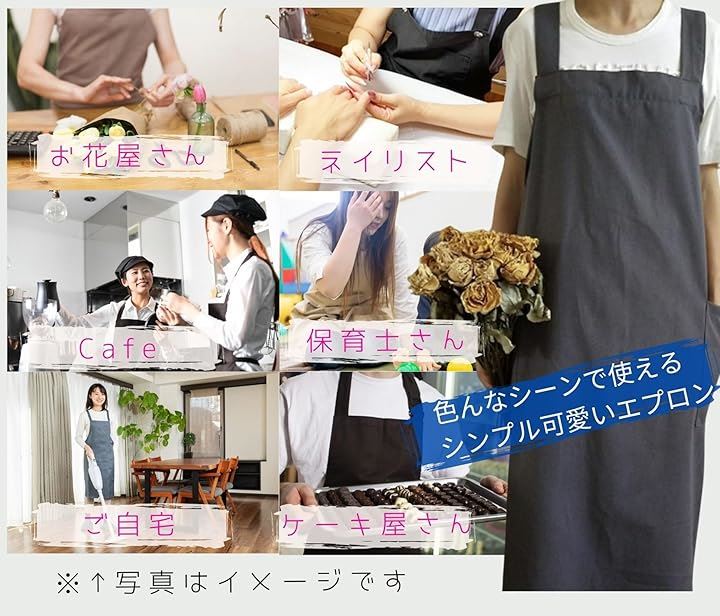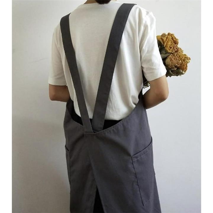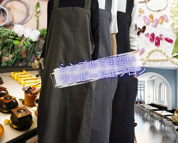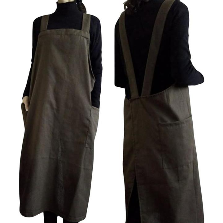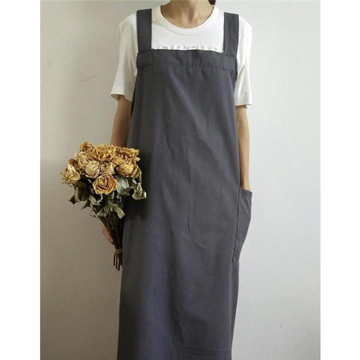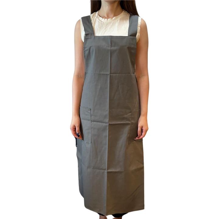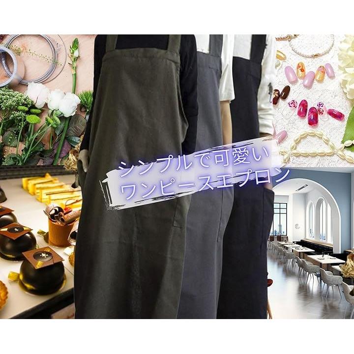 エプロン シンプル ロング丈 無地 ポケット 仕事用 レディース ナチュラル ワンピースエプロン お尻隠れる