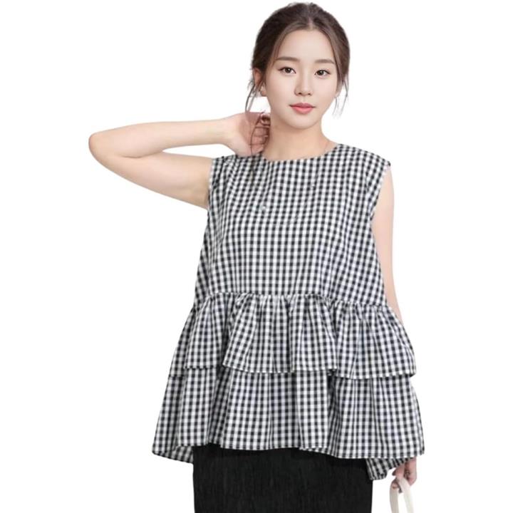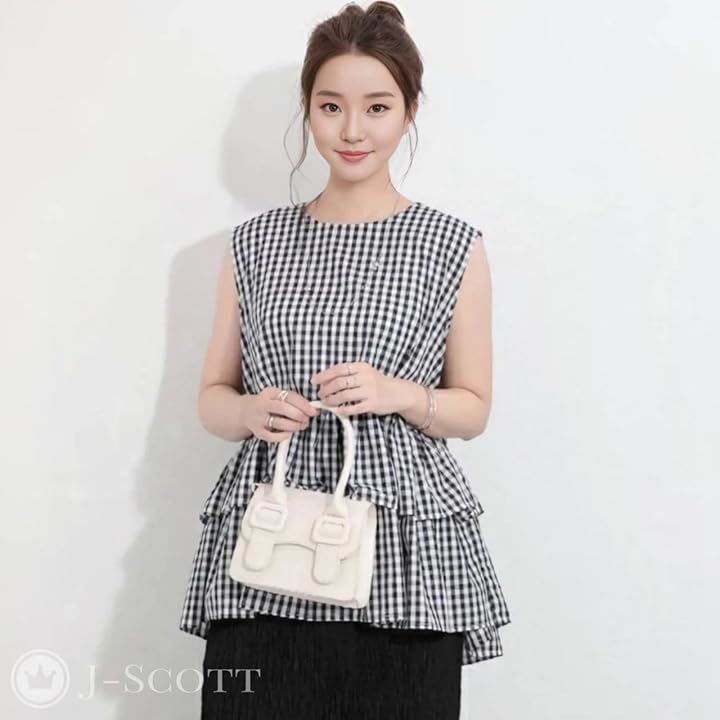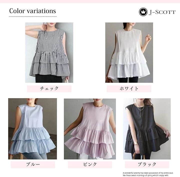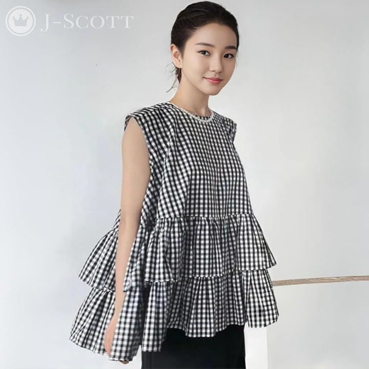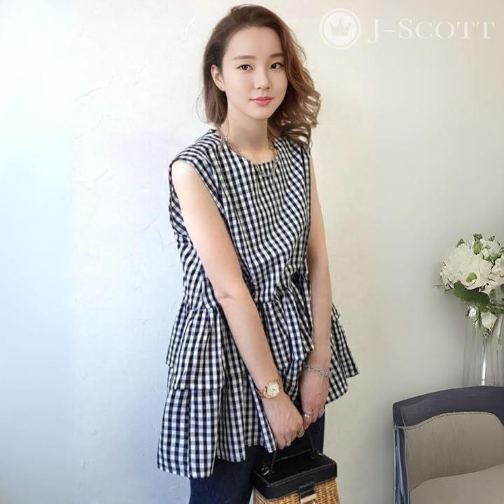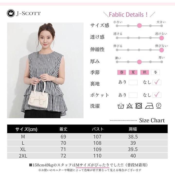 ジェイスコット ティアードブラウス レディース ノースリーブ フリル チュニック ラウンドネック フェミニン