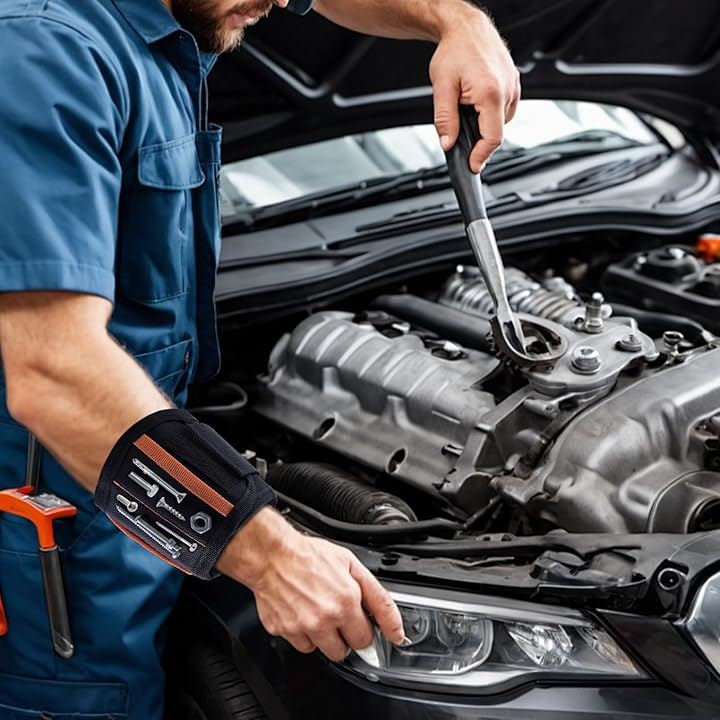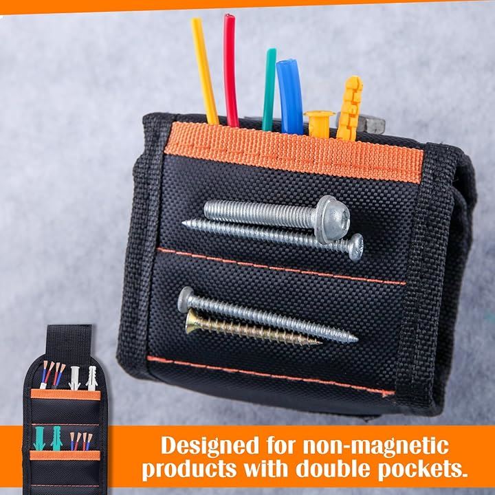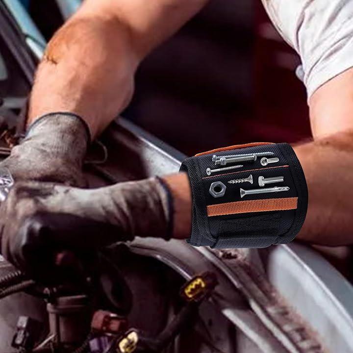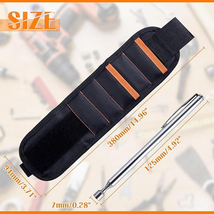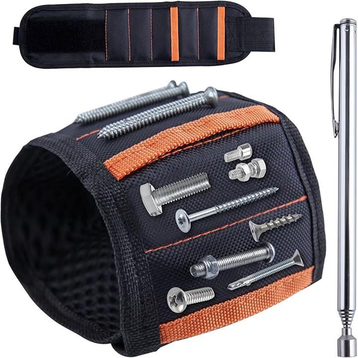 マグネットリストバンド ピックアップツール 磁気リストバンド ネジ 10強力なマグネット 5ロウナイロン 2穴収納ポケット 磁気リストバンド&ユニバーサルソケットグリップ ネジ保持用マグネットリストバンド