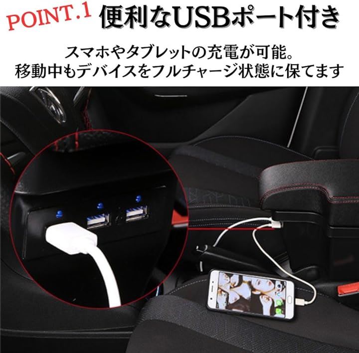 互換品 マツダ CX-3 DK5/デミオ DJ3 DJ5 対応 アームレスト コンソールボックス USBポート付