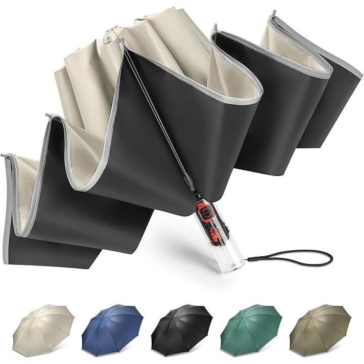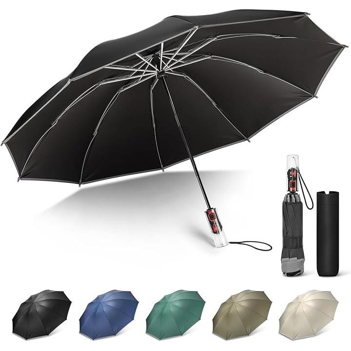折りたたみ傘 逆折り式・逆戻り防止安全設計10本骨 大きい 反射テープ付き 日傘 ワンタッチ 耐風 UVカット撥水速乾 頑丈 雨晴兼用 梅雨対策 台風対応 男女兼用 おしゃれ 収納ケース付き
